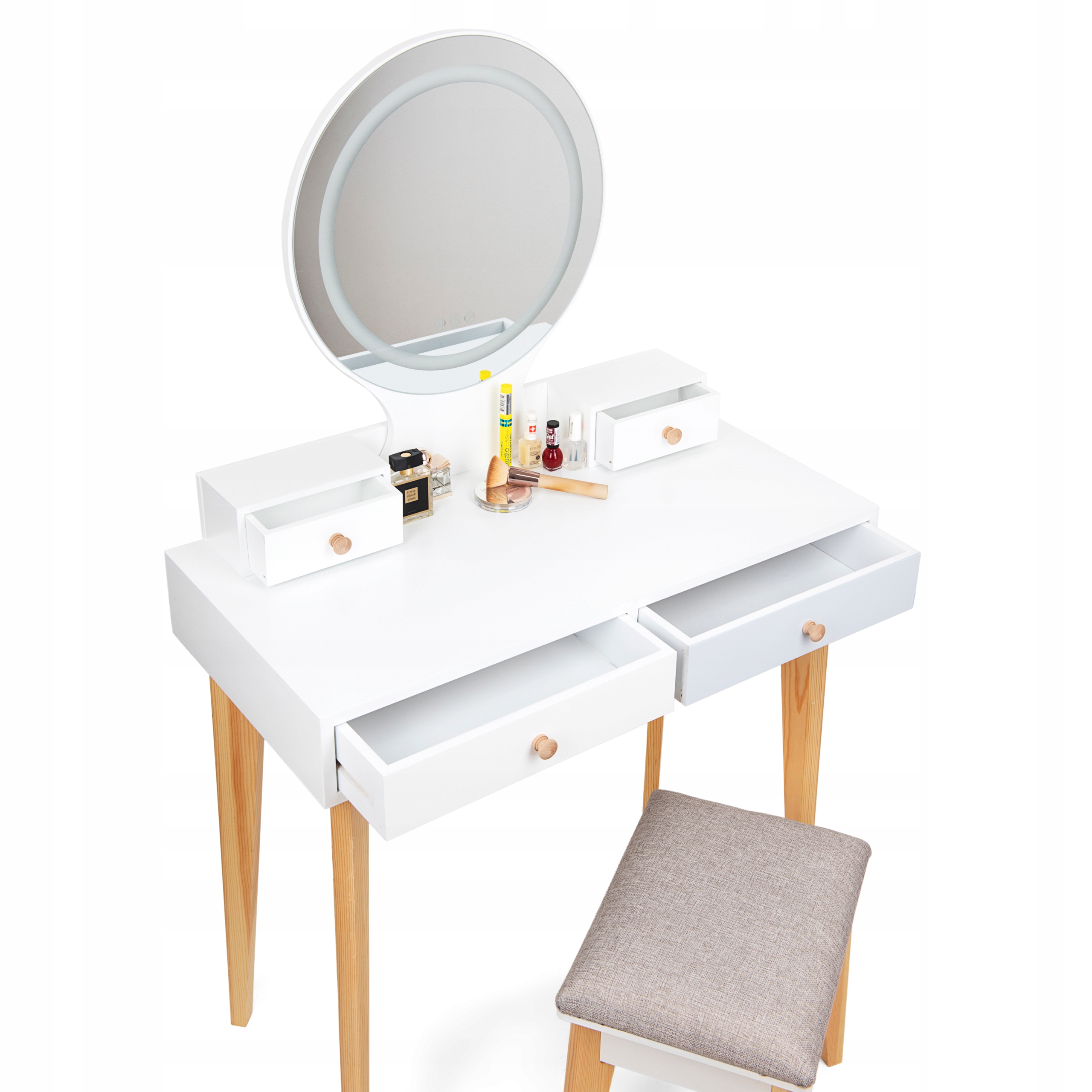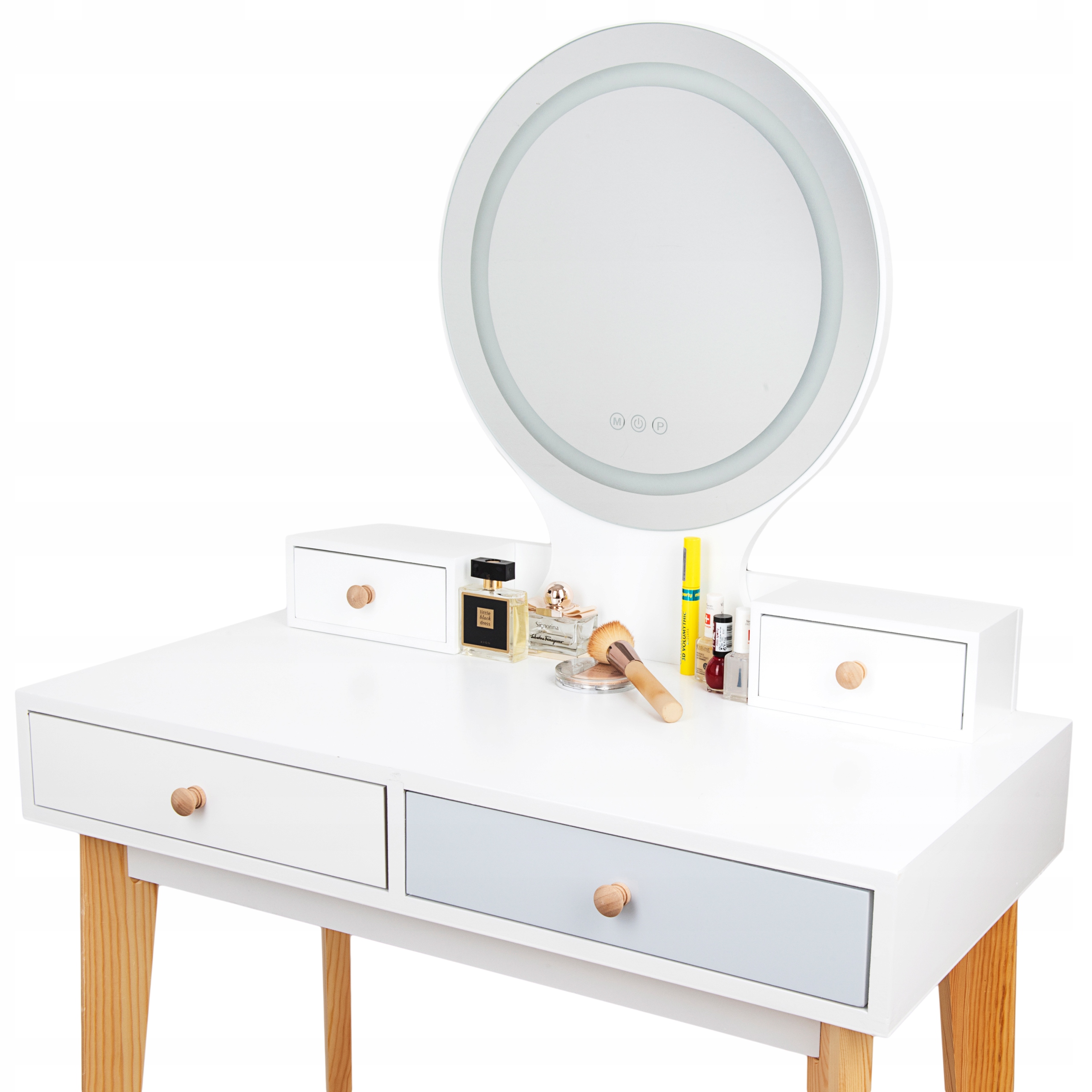 БІЛИЙ КОСМЕТИЧНИЙ СТОЛИК У СКАНДИНАВСЬКОМУ СТИЛІ СВІТЛОДІОДНЕ ДЗЕРКАЛЬНЕ ПІДСВІТЛЕННЯ