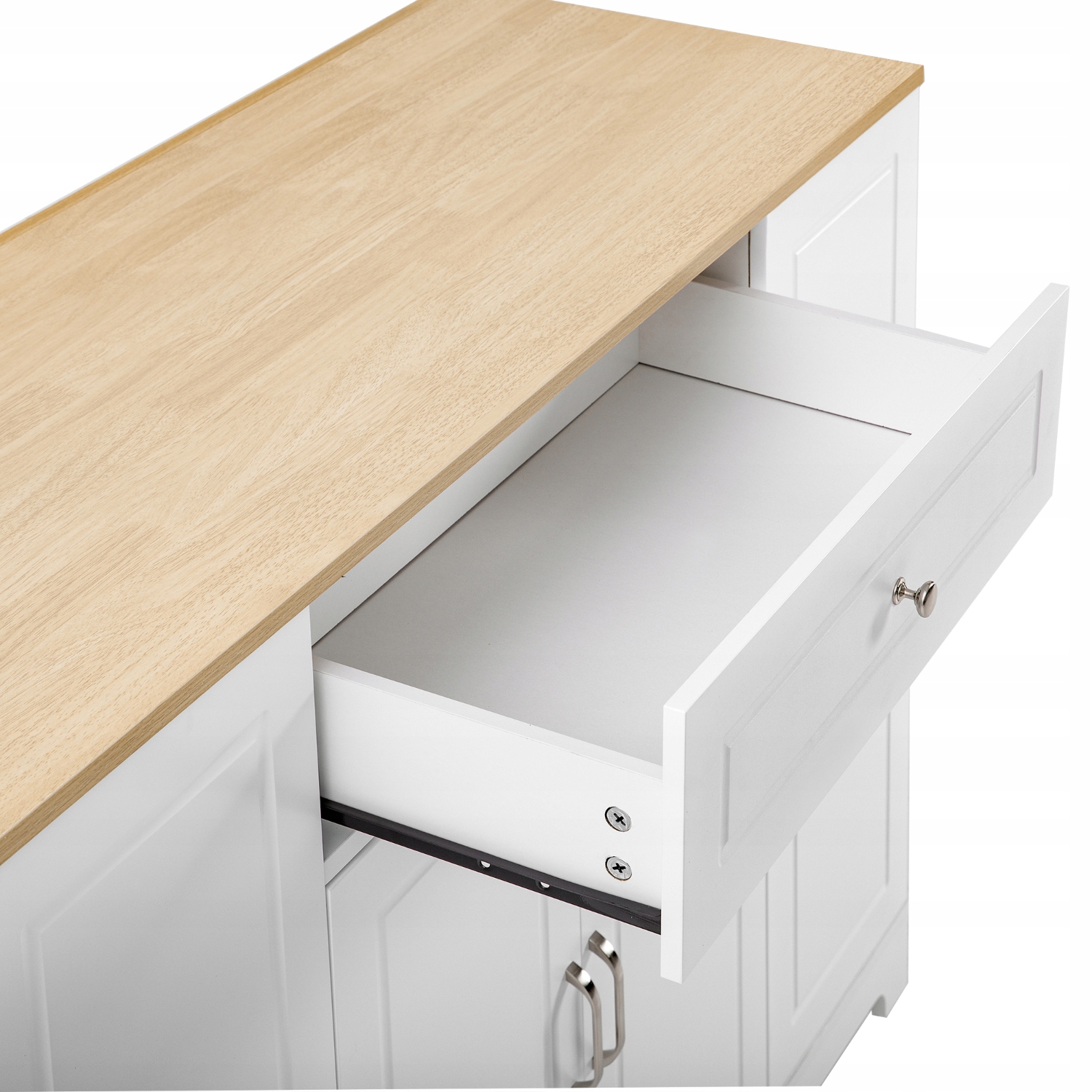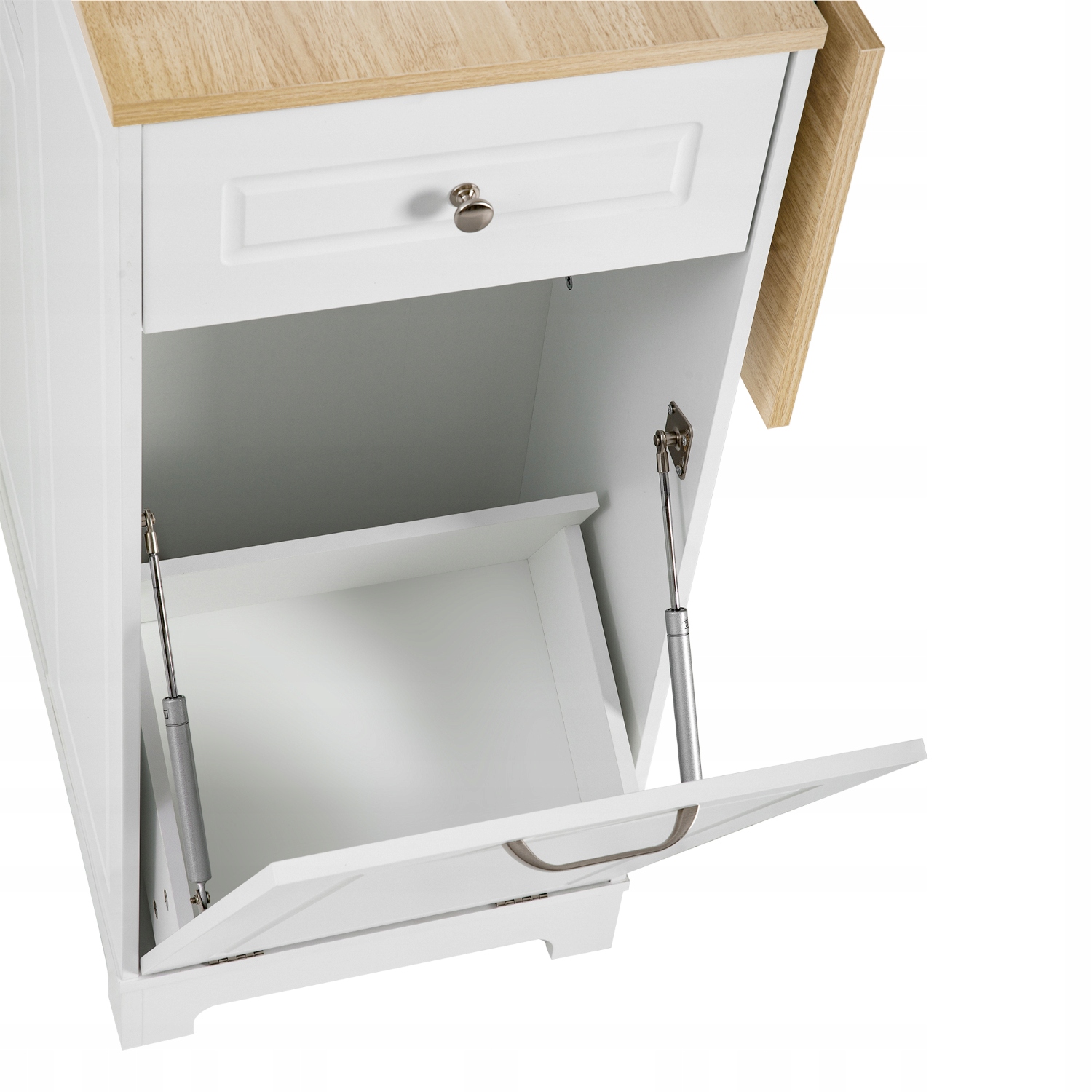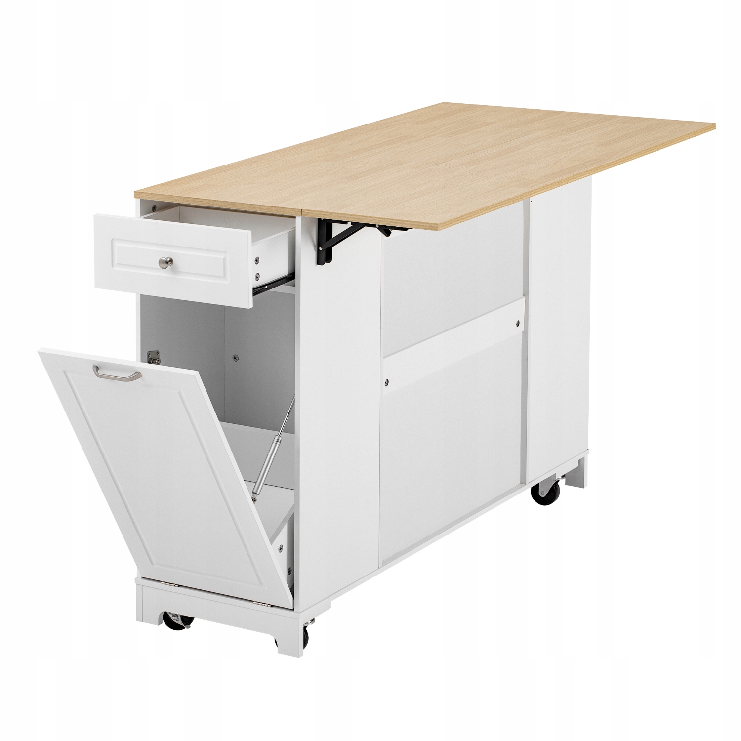 Білий кухонний острів - розкладна обідня зона + ящики + контейнер для сміття