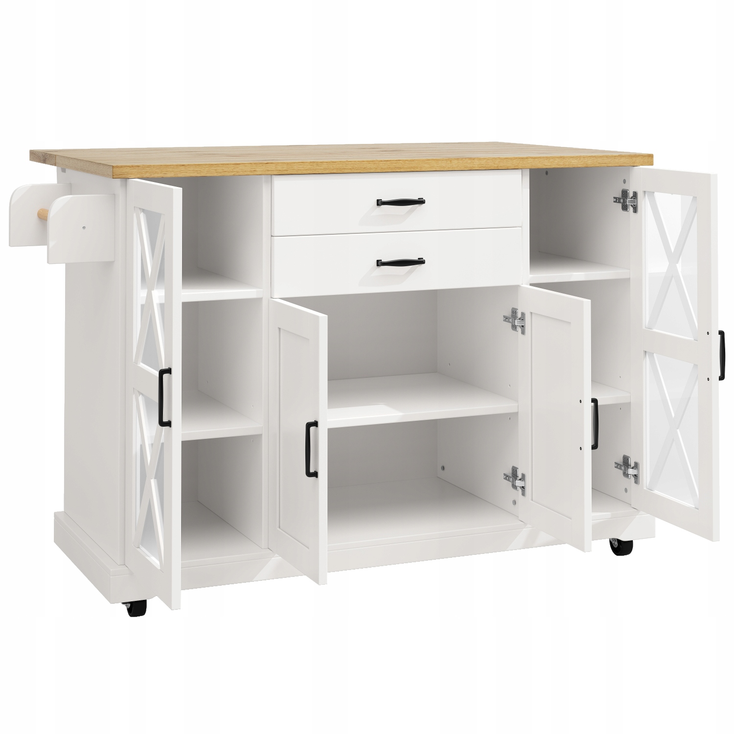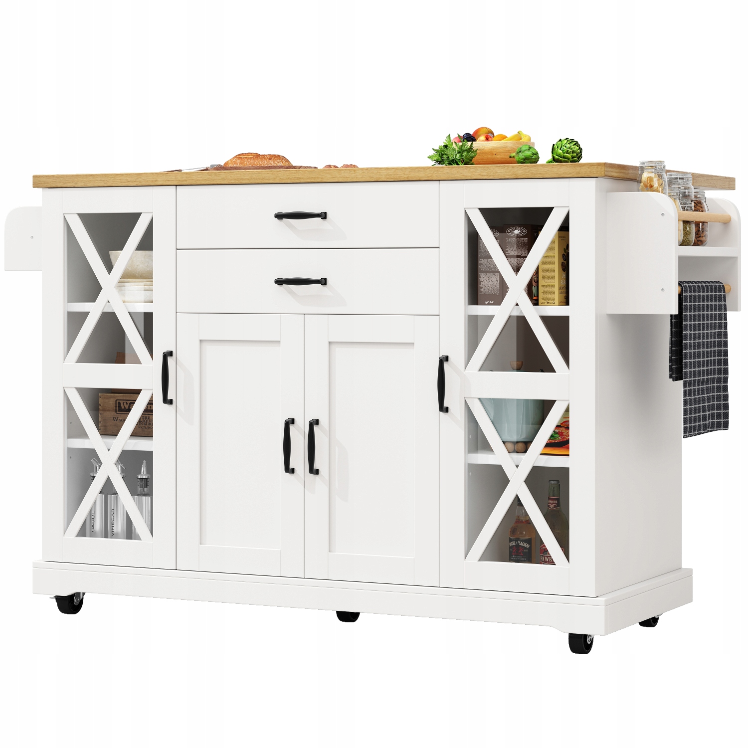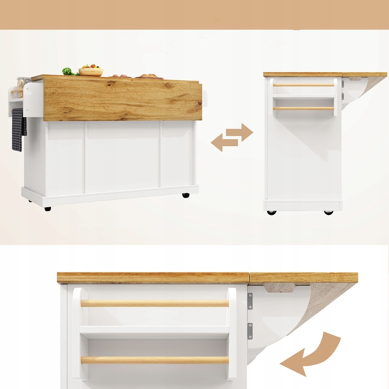 Білий кухонний острів 120 см - мобільний + 4 двері + 2 ящики + регульовані полиці