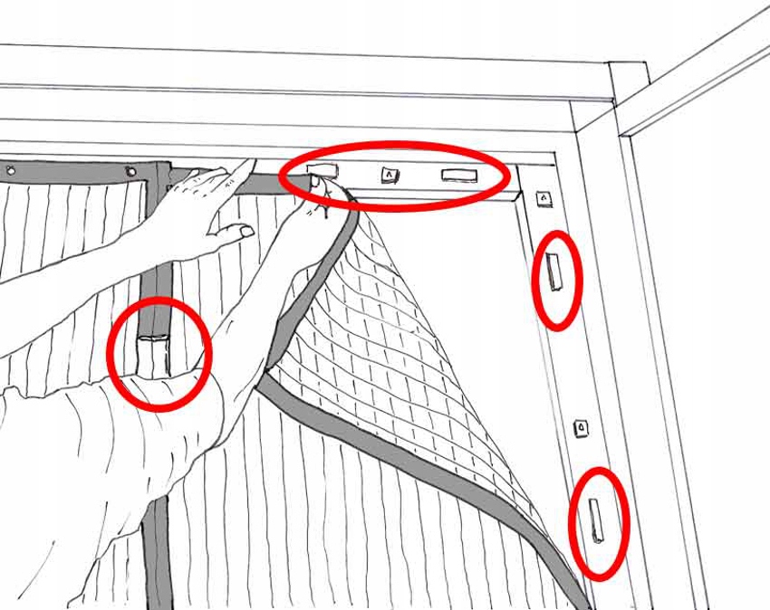 комарі чистий магнітний комарів сітка - два ремені. Завіса складається з двох білих сітчастих ременів з магнітними ременями, встановленими в краях - виходячи з завіси, ми розкладаємо ремені, які потім після нашого проходу "автоматично" ковзають за нами, захищаючи кімнату. Fits the door to a maximum of 160cm x 240cm