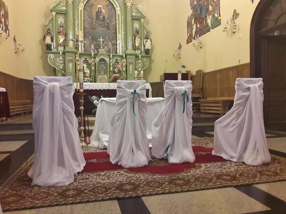 обкладинки можуть бути використані для прикраси стільців для нареченої та нареченої під час весільної церемонії у церкві та в офісі реєстру , а також для прикраси стільців під час причастя.