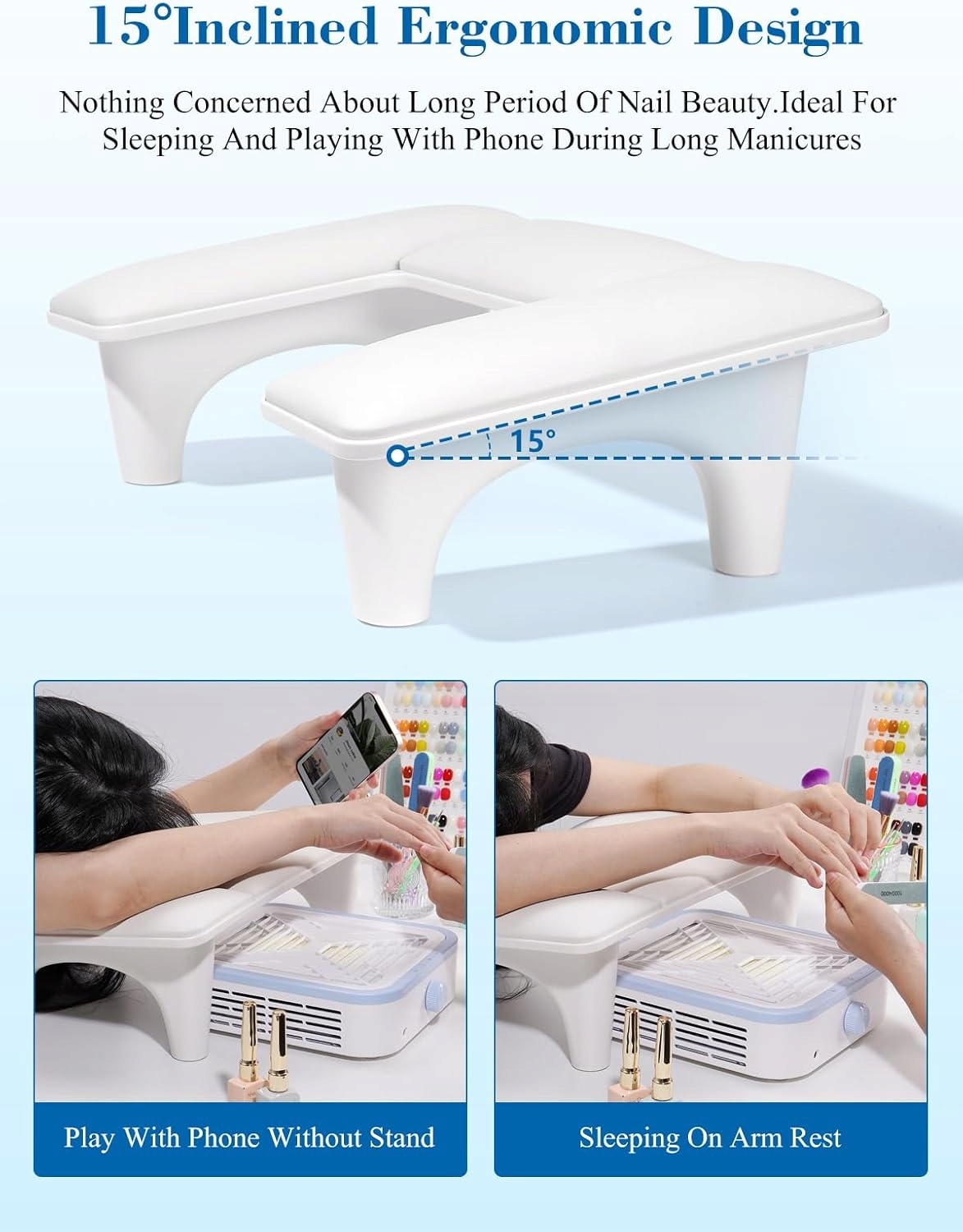 armline після повернення з клієнта (можливі мінімальні сліди на кадрі). Продукт знаходиться в дуже хорошому стані, як новий. Пропозиція також включає кілька реальних фотографій пропонованого набору. 4 Простий і стильний дизайн підходить для техніків нігтів та ентузіастів. U -Shaped Construction ефективно знижує тиск у руку і знімає втому вручну, дозволяючи безболісному манікюру навіть у тривалий день на роботі або довгий сеанс манікюру. 4 Незалежно від того, чи перебуваєте ви в професійному салоні для нігтів чи вдома, цей підлокітник для нігтів забезпечує розслабляючий, професійний манікюрний досвід. 4 Під нашою позицією для прикраси нігтів більше місця. Його висота (13 см) ідеально вписується в лампу для нігтів. Його також можна використовувати з свердлами для нігтів, пилососними очищувачами нігтів та іншими інструментами для нігтів. Ефективно заощаджуйте простір на стіл для нігтів та підвищити ефективність та результати роботи над нігтями. Це не лише ідеальне рішення для любителів нігтів, але й необхідний інструмент для нігтів.