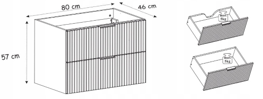 Дві місткі шухляди з кульковими напрямними, оснащені функцією плавного закривання - SOFT CLOSE, є не тільки практичним рішенням, але й гарантією вишуканості та комфорту в повсякденному житті. використовувати. Простір для сифона робить наші меблі не тільки чудовими за своєю естетикою, але й ідеально адаптовані до потреб сучасної ванної кімнати.