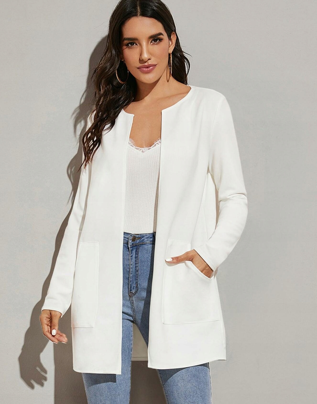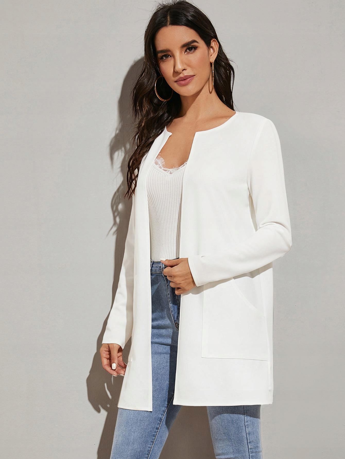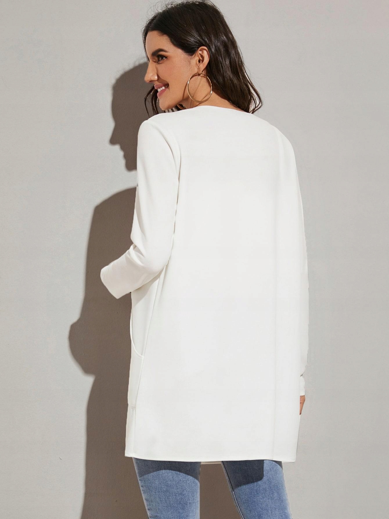 Білий папський простий гладкий блейзер з довгими рукавами Shein 38 кишені
