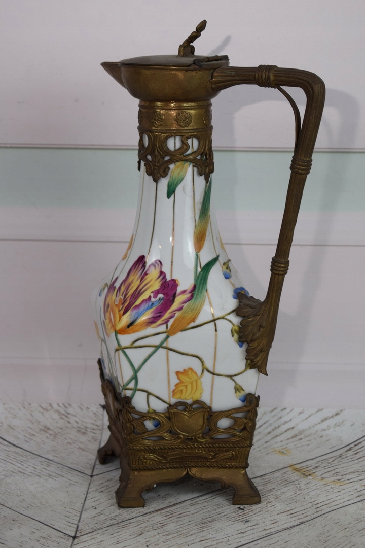 Привіт, сьогодні я хотів би запропонувати вам гарний порцеляновий графин з коричневою фурнітурою. Ця чудова річ ідеально впишеться в будь-яку стильну кімнату.
