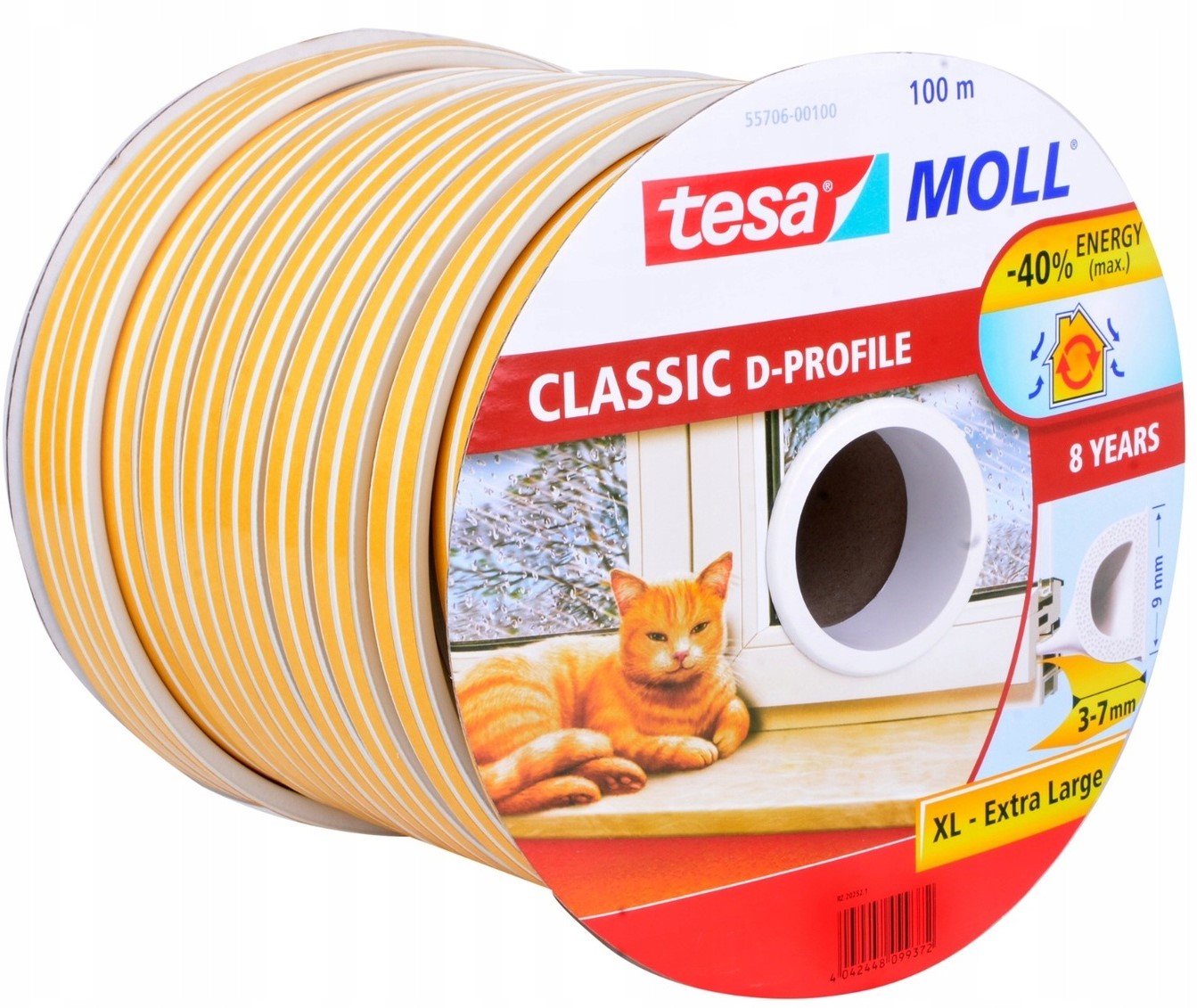 біла гумова прокладка ПВХ. Профіль гумової прокладки Tesa Moll® D є ефективним захистом від чернетки, які можна використовувати навіть для широких прогалин.