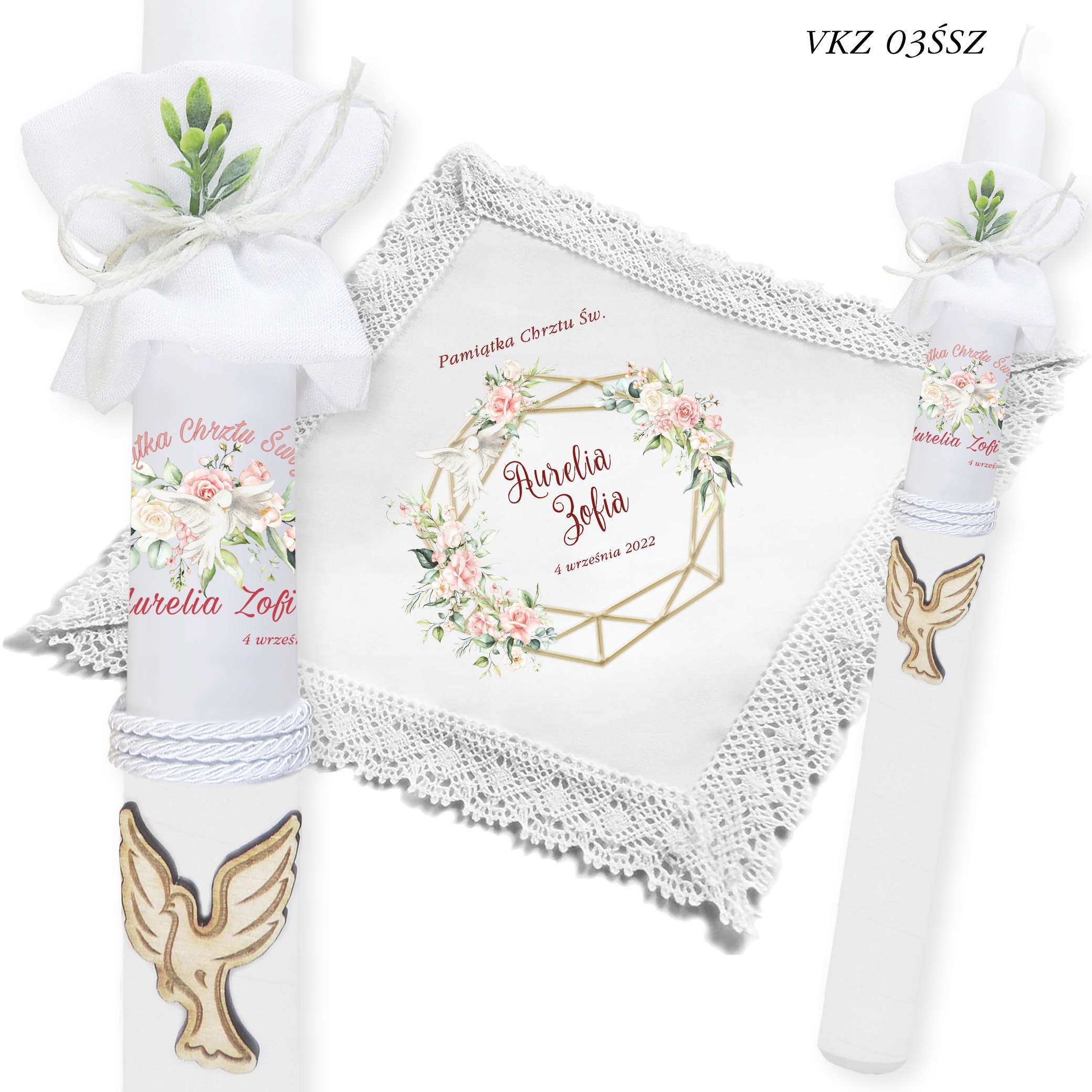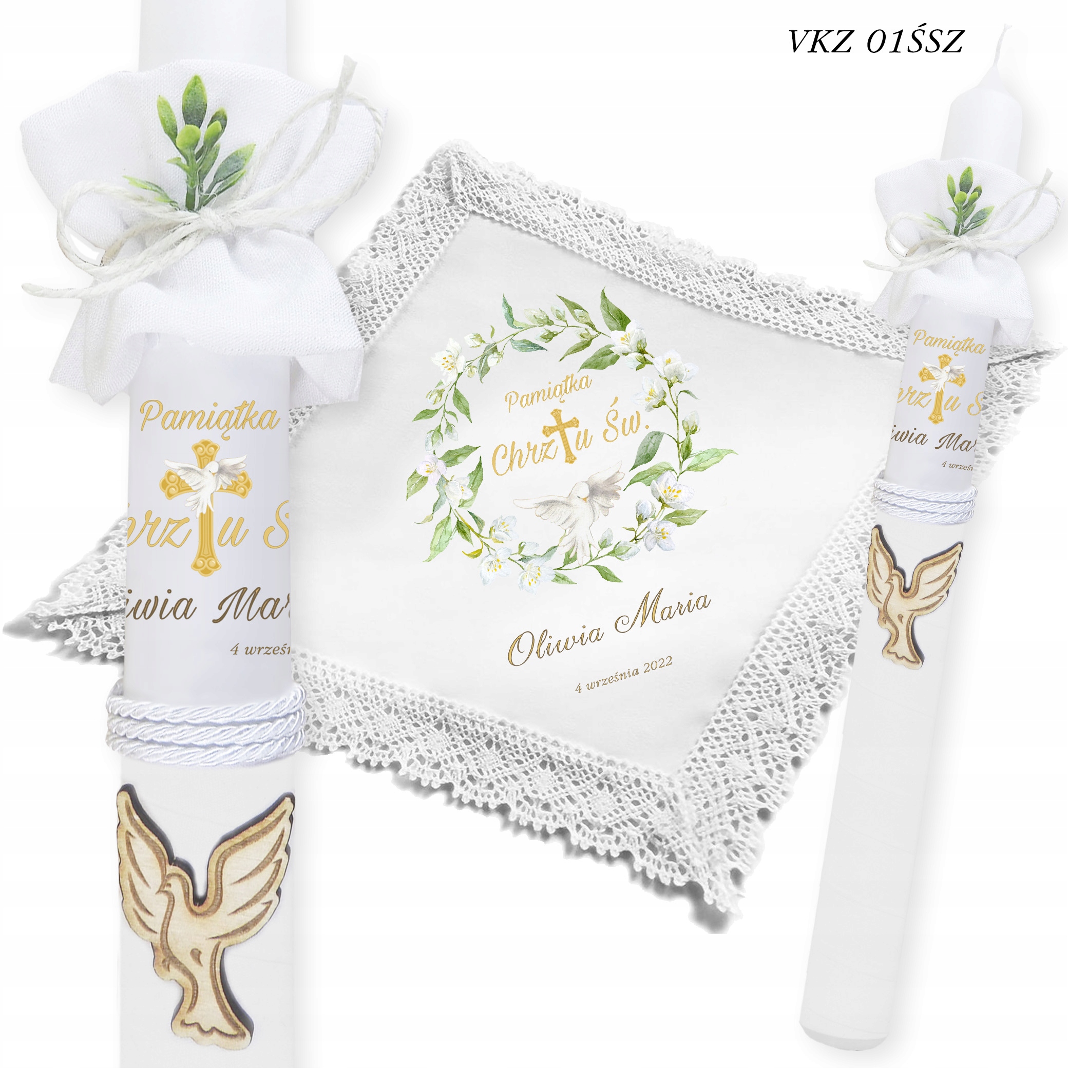 БІЛИЙ РІЗДВЯНИЙ ОДЯГ мереживо та хрестильна СВІЧКА ВК