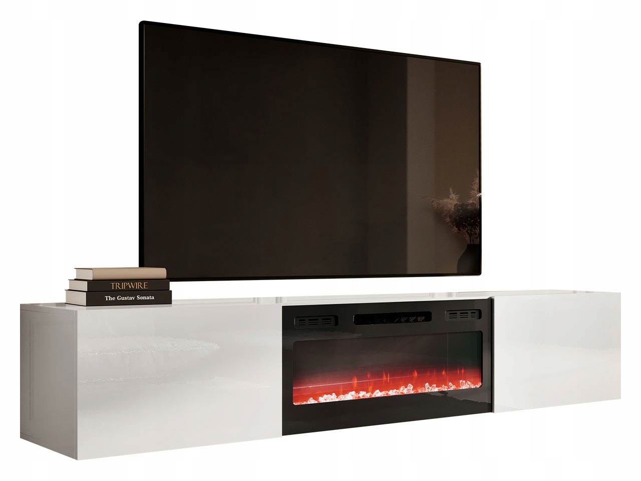 слайд RTV шафи з електричним каміном буде особливо добре працювати у вітальні, молодіжній кімнаті чи маленькій квартирі.