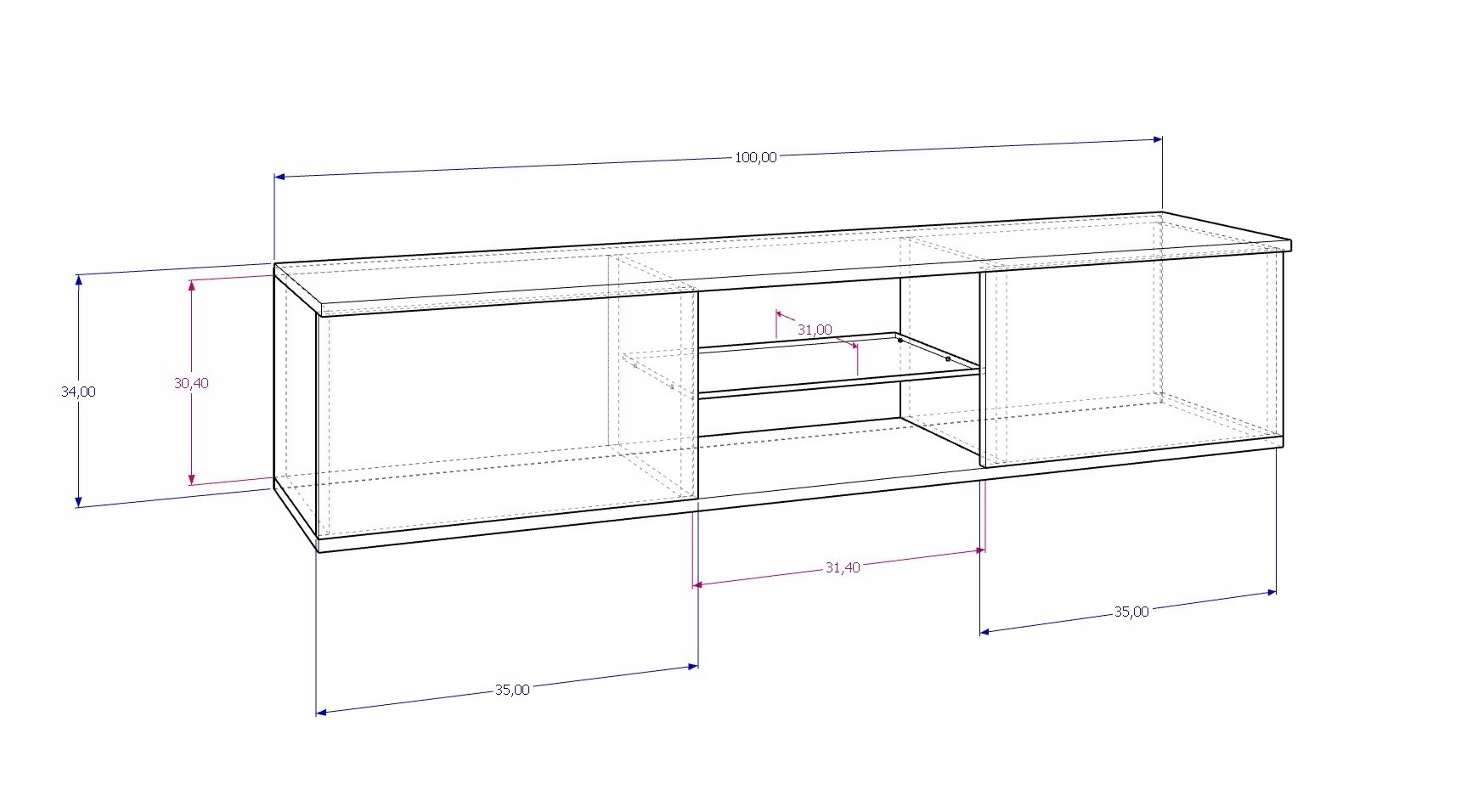 Глибина відділень: 34 см.