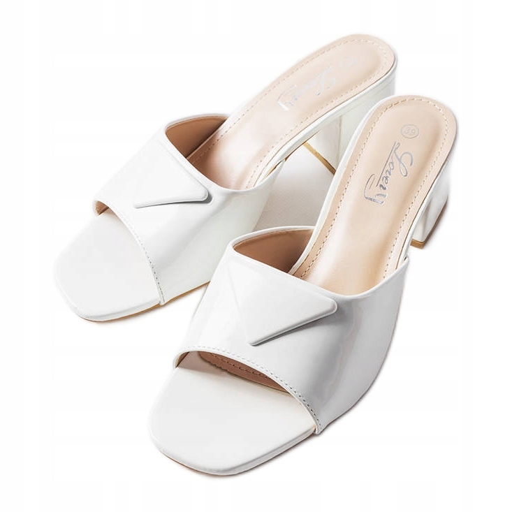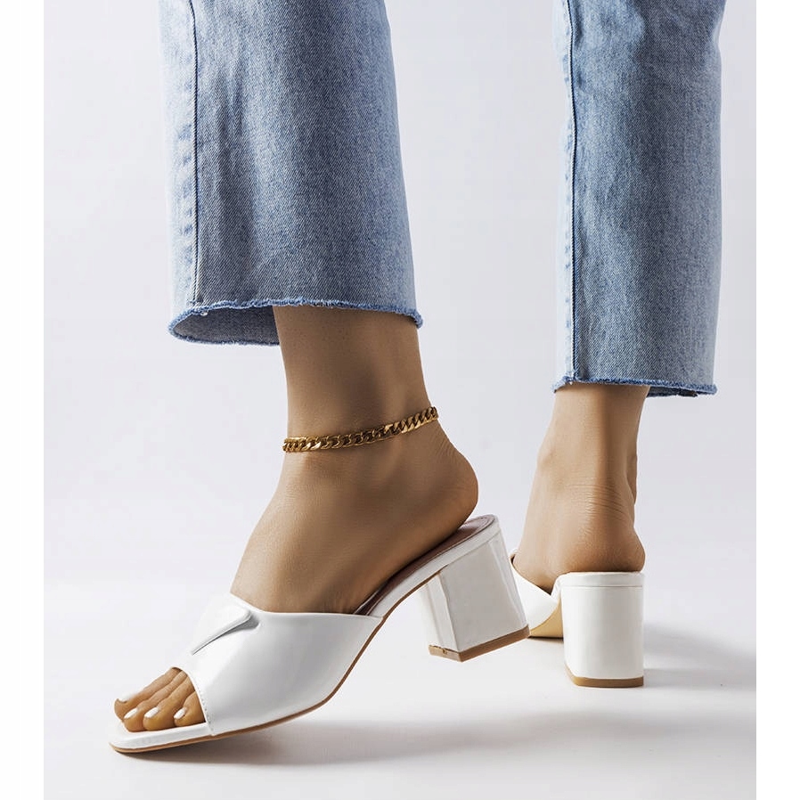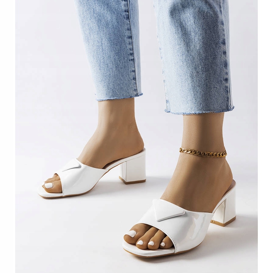 Білі лаковані мюлі на підборах Branch — ідеальний вибір для кожної модниці, яка цінує сучасний стиль і не хоче витрачати гроші. Ці недорогі літні черевики виготовлені з пластику та покриті лаком, що надає їм модного та свіжого вигляду. В'єтнамки на підборах забезпечують стійкість і комфорт під час носіння, а модель сліпони дозволяє швидко і легко взутися в спекотні дні. Крім того, зовнішній матеріал виготовлений з екошкіри, що робить взуття більш екологічним. Білі лаковані мюлі на підборах Branch – ідеальний вибір для кожної жінки, яка шукає модне та зручне літнє взуття!