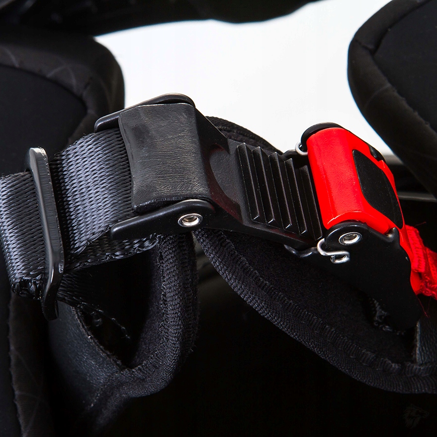 Ще одним елементом екіпіровки є мікрометрична застібка, яка має функцію швидкого зняття та забезпечує гарне «утримання» шолома під час їзди. Пам’ятаючи про мотоциклістів, які носять окуляри, дизайнери LS2 застосували в Strob спеціальне рішення у вигляді системи Glass-friendly, тобто точно вирізаних виїмок у підкладці, що полегшує надягання та зняття окулярів. Це рішення також означає, що навіть довгі поїздки не спричиняють тиску в місцях, де підкладка з’єднується зі скронями.