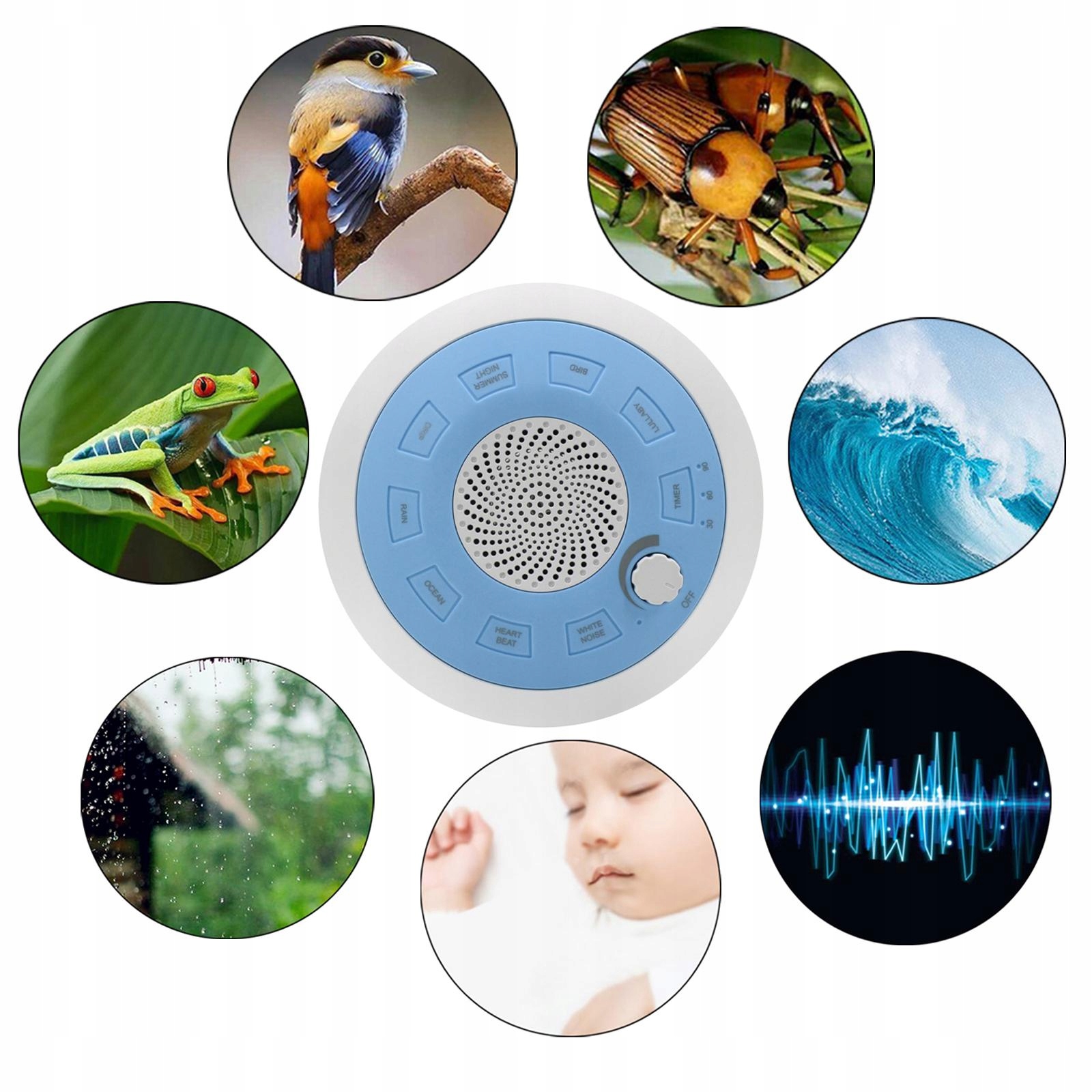 Білий шумову машину регулюється об'єм 3 таймер спальний звук синій