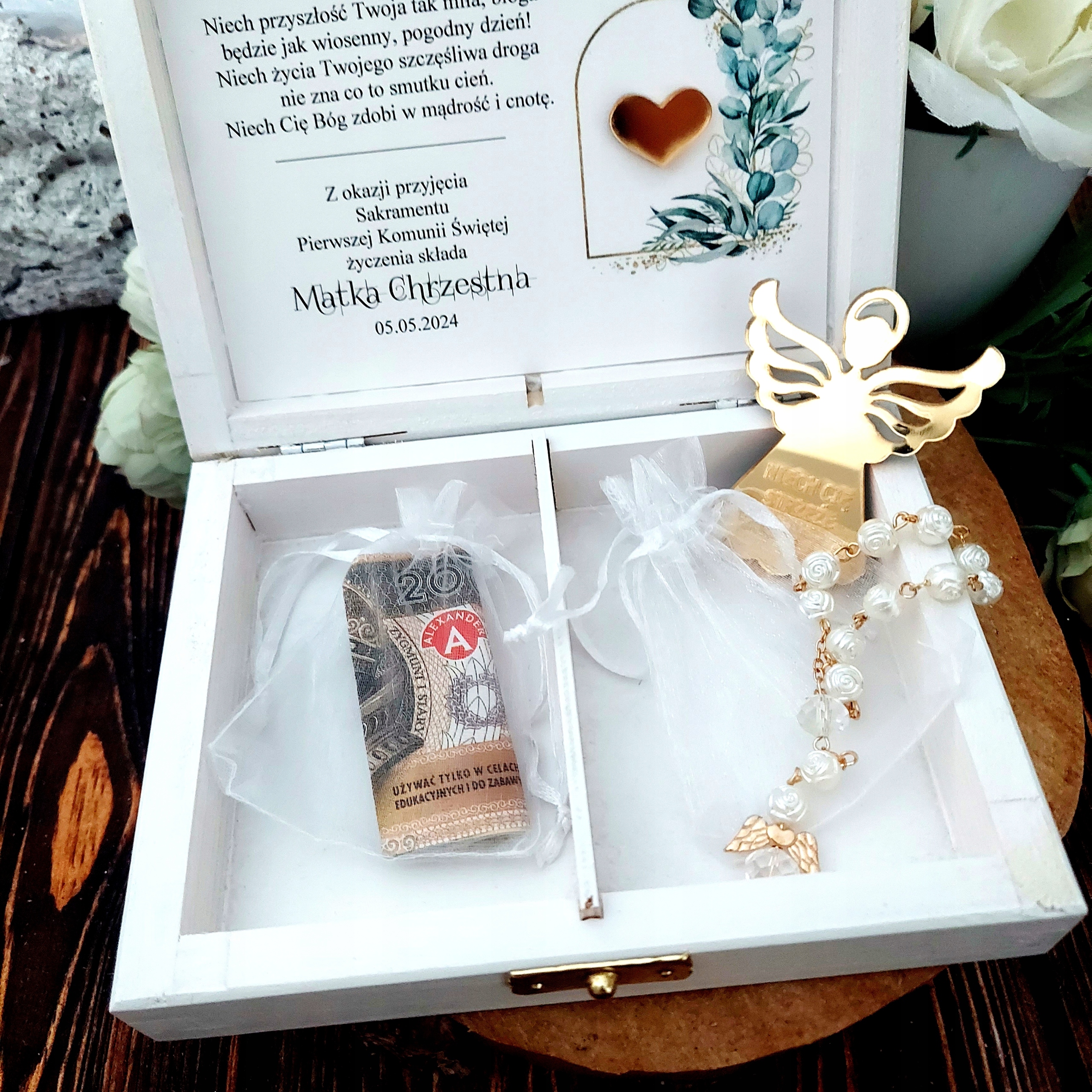 БІЛИЙ сувенір на причастя з вервицею та янголом