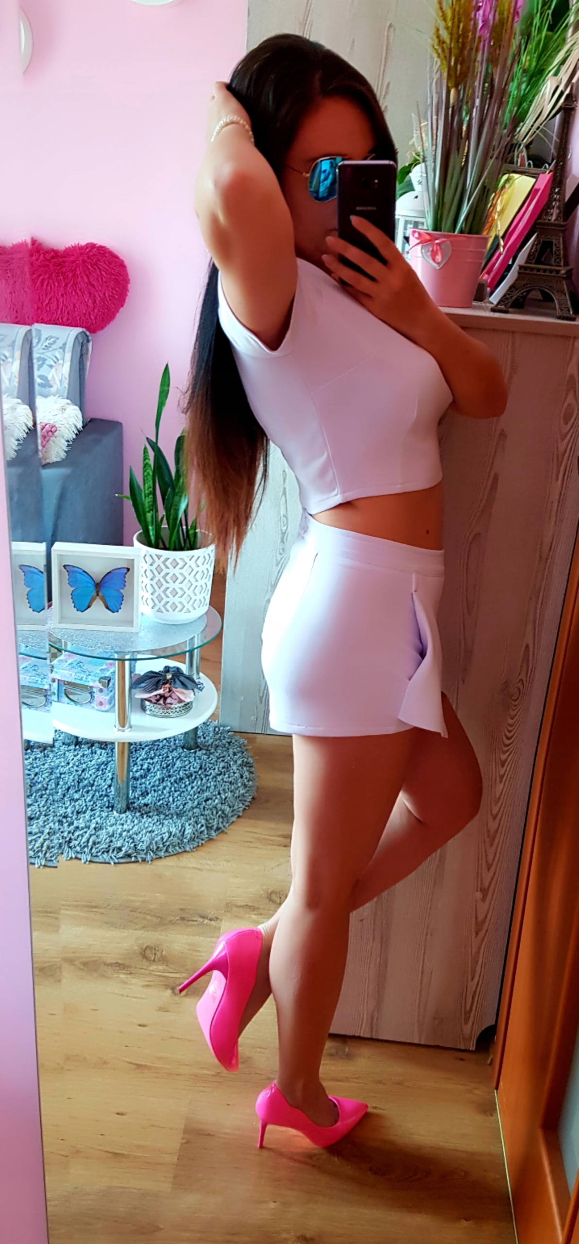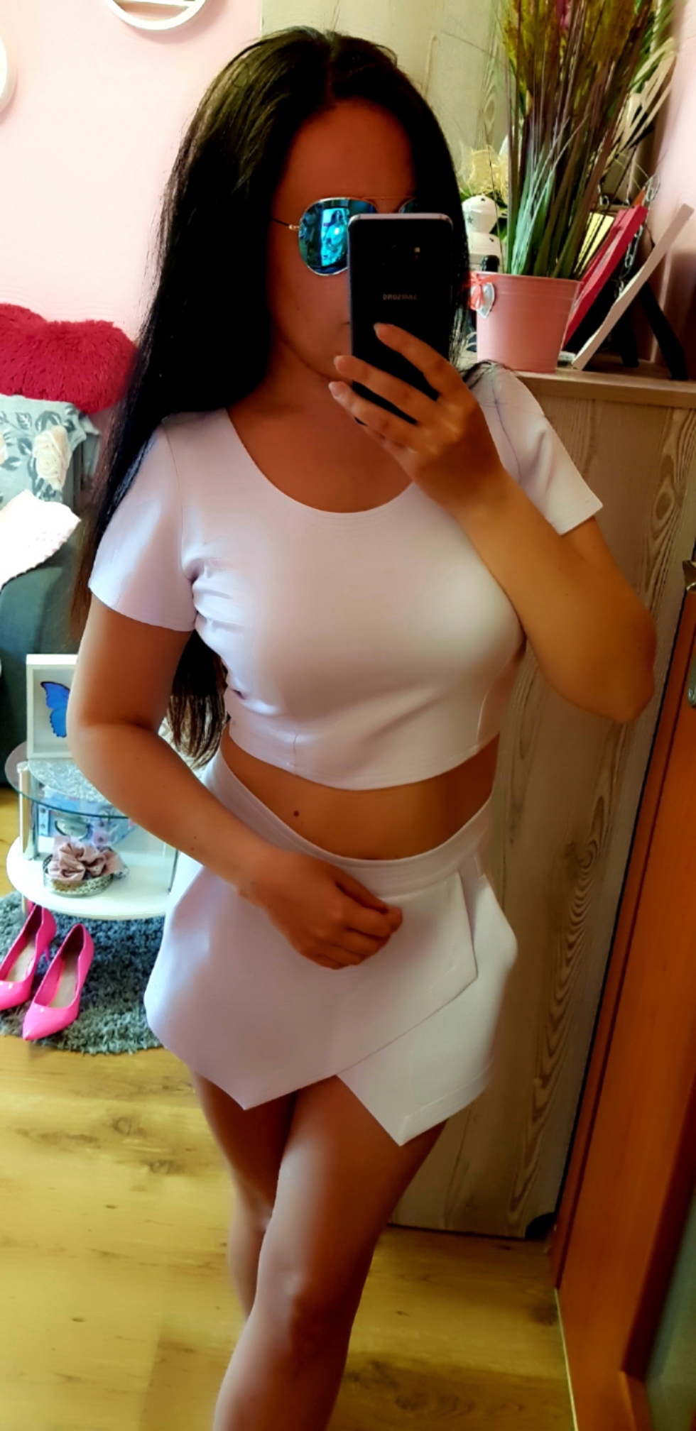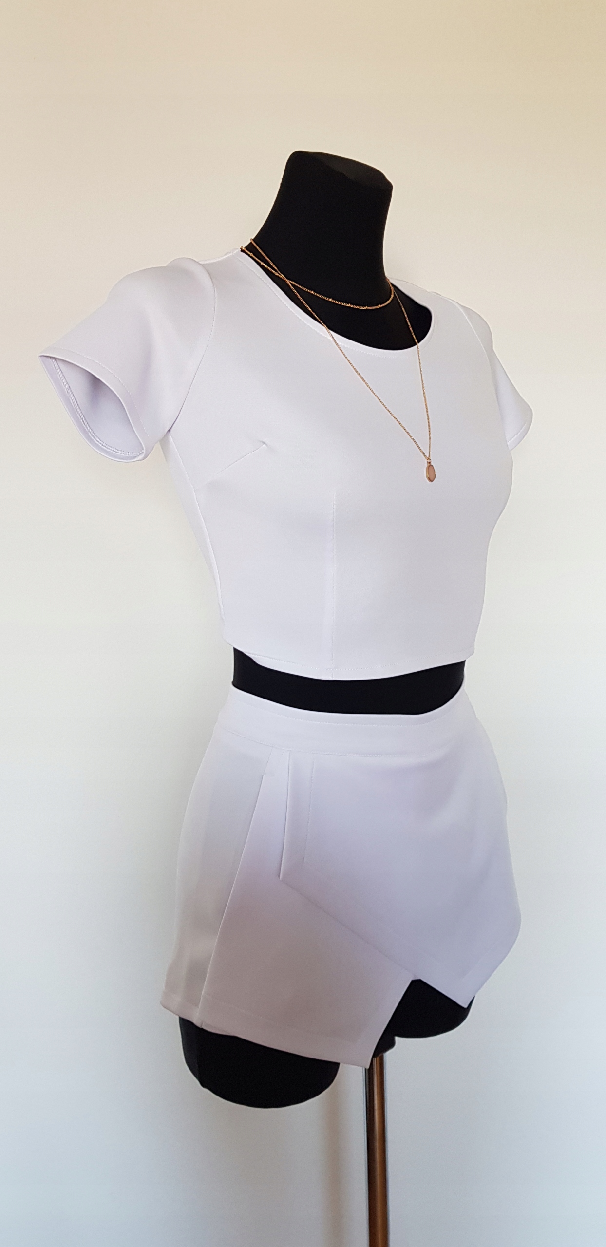 БІЛИЙ ТОП БЛУЗА + АСИМЕТРИЧНІ ШОРТИ З КИШЕНЯМИ L