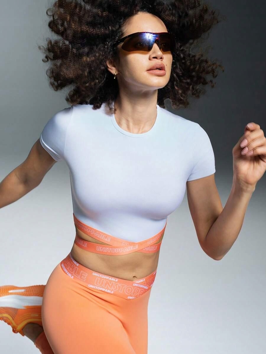 БІЛИЙ ТОП З КОРОТКИМИ РУКАВАМИ ОРАНЖЕВІ СМУЖКИ FIT SHEIN 40/42