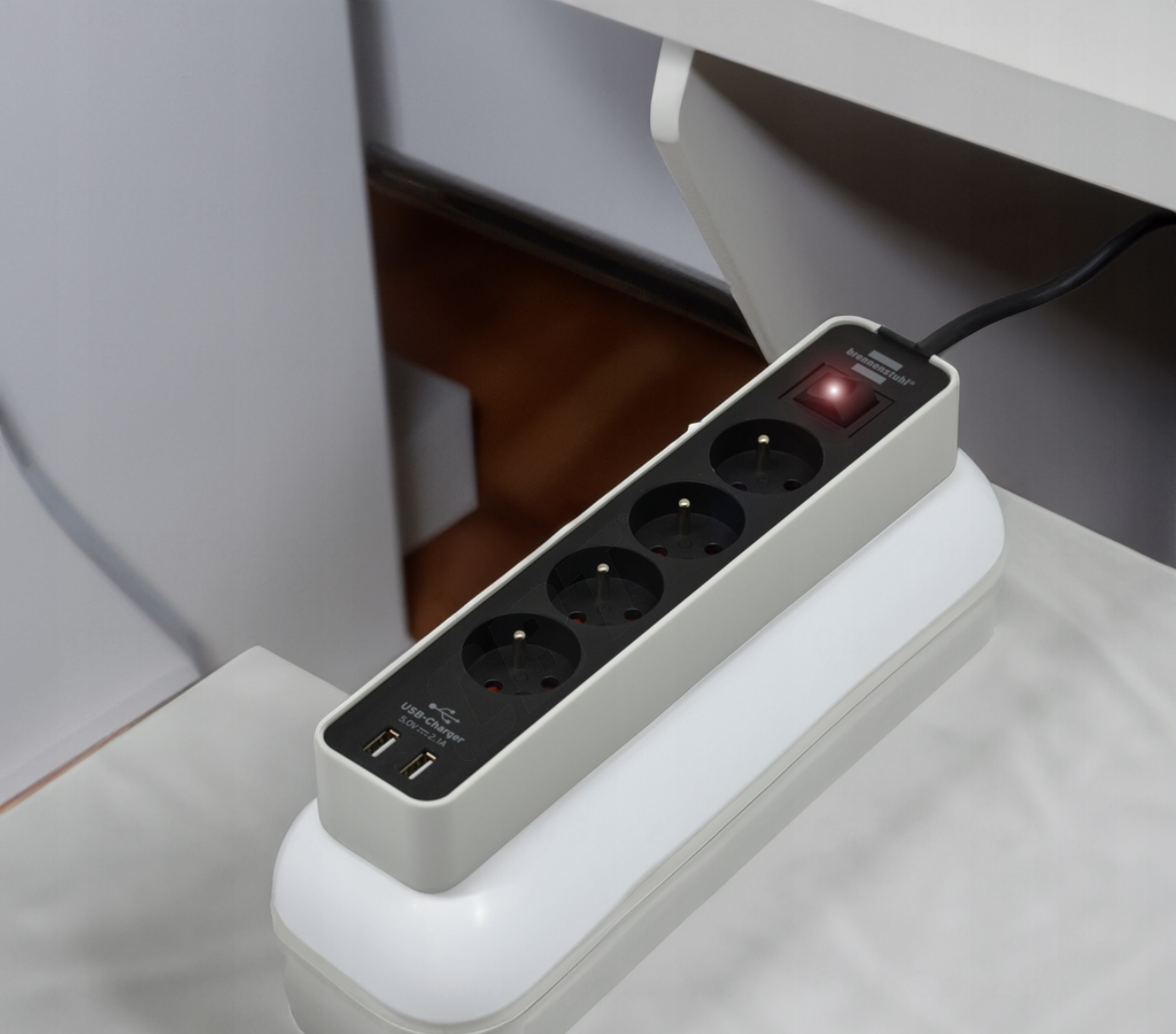 Подовжувач живлення виготовлено з високоякісного пластику, що забезпечує надійну міцність і стійкість до тріщин і розривів. Створення міцної конструкції, зберігаючи надзвичайно компактні розміри, включає 4 стандартні роз’єми та 2 роз’єми USB. Це рішення дозволяє заряджати два пристрої, використовуючи лише USB кабель, без необхідності підключати зарядний пристрій, а також живити інші пристрої, підключені до стандартних розеток, усе в одній смузі!