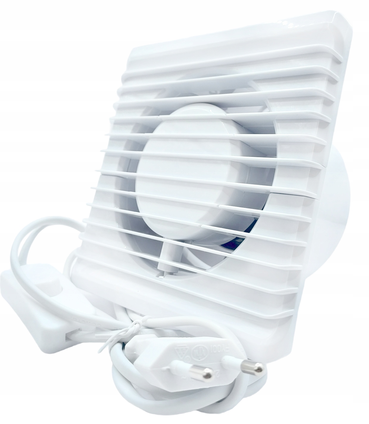 БІЛИЙ ВЕНТИЛЯТОР ДЛЯ ВАННОЇ З КАБЕЛЬНИМ ВИМИКАЧОМ І ВИЛКОЮ FI 80