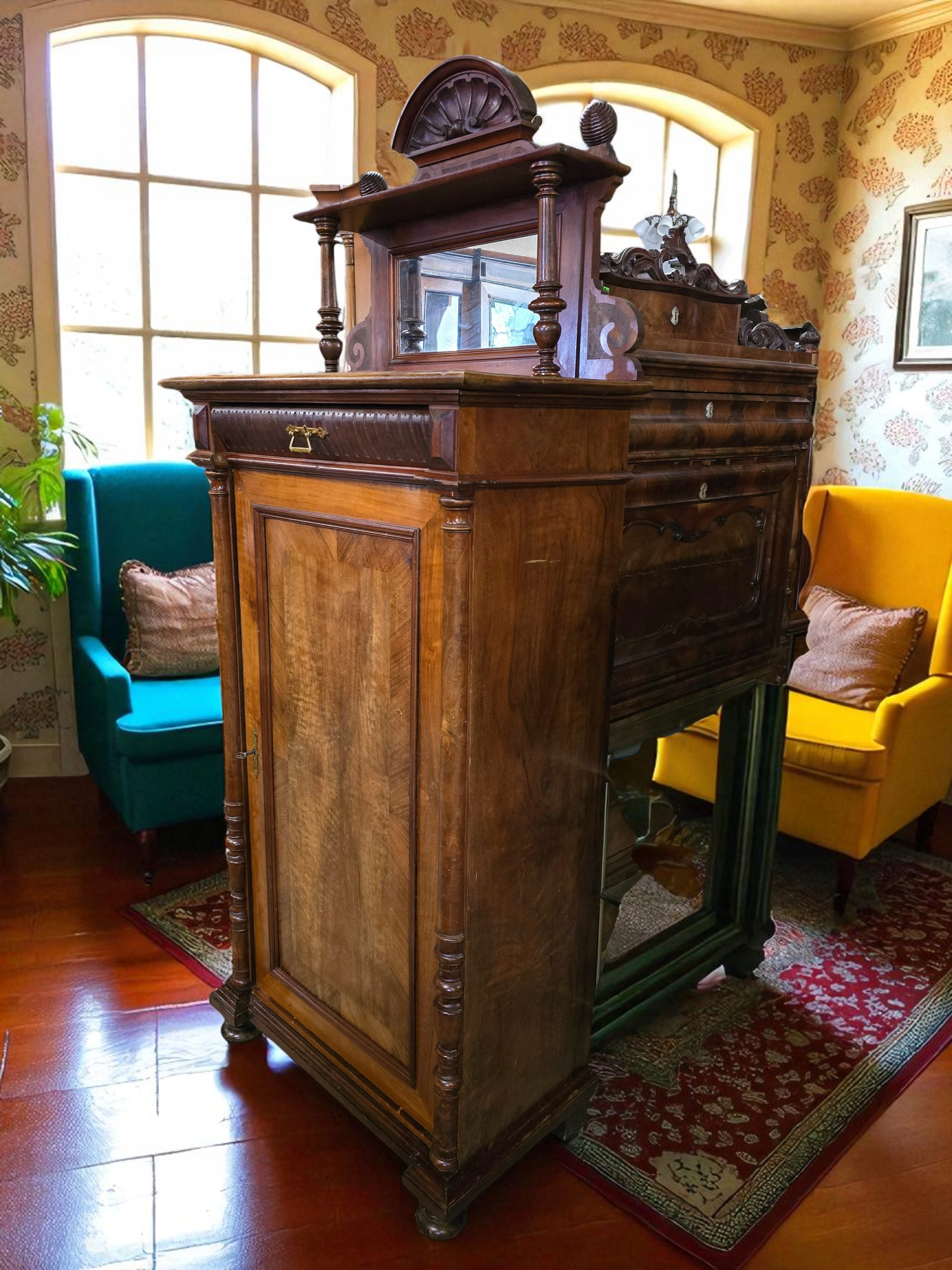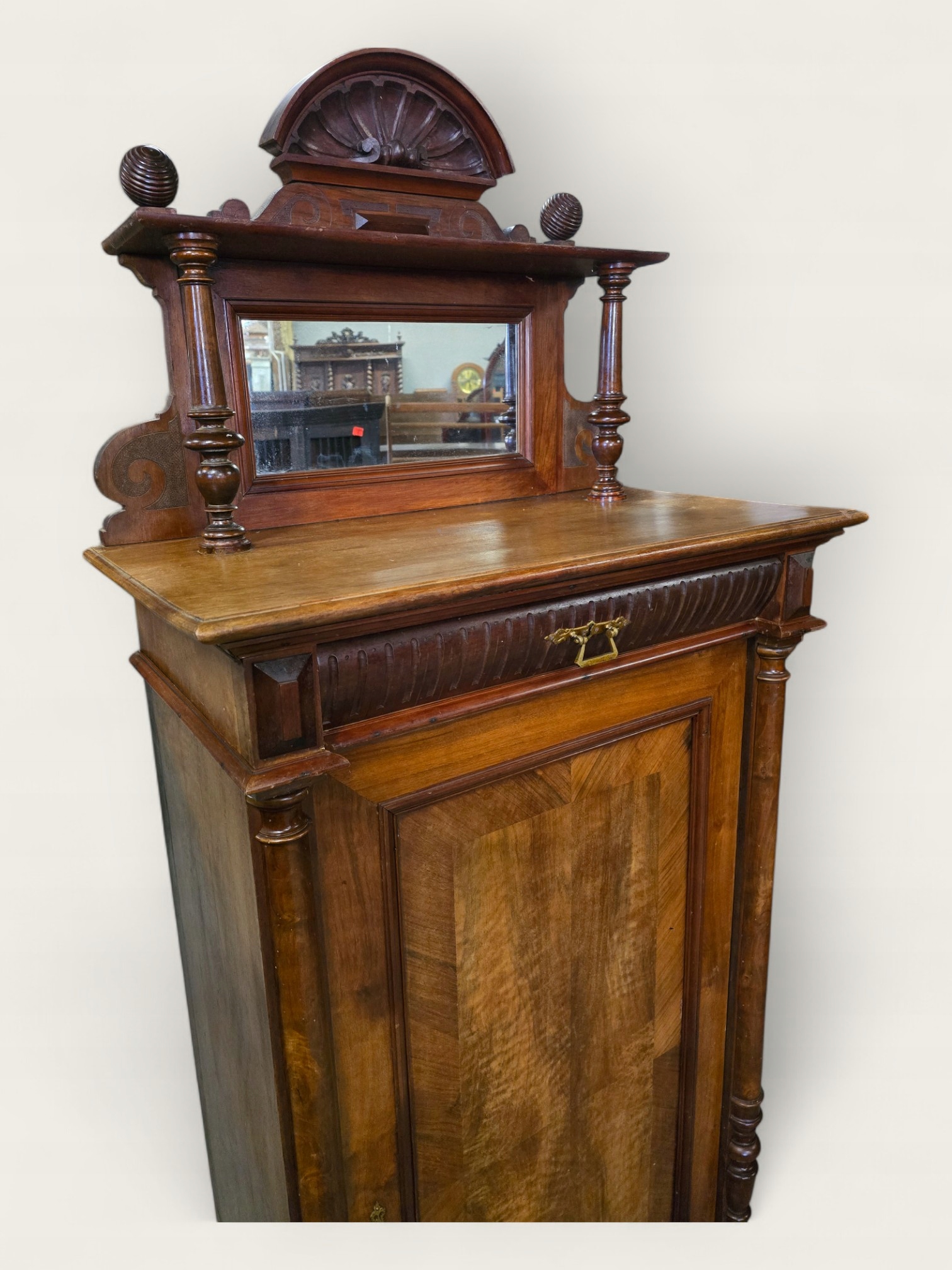 Я запрошую вас до кінця історичної еклектичної білизни з другої половини 19 століття, розкопаний горіх. Меблі має практичне розширення дзеркала, яке можна видалити, перетворивши комод у класичну білизну.