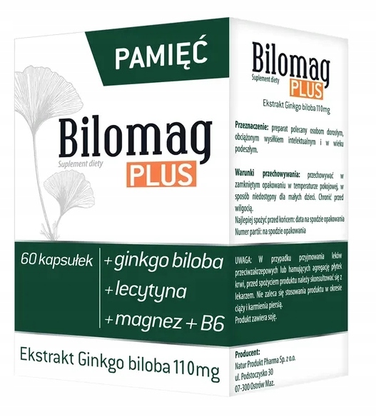Дієтична добавка, що містить комплекс рослинних, мінеральних і вітамінних інгредієнтів, у тому числі висококонцентрований екстракт гінкго білоба, що сприяє, серед іншого: для підтримки нормального функціонування мозку у людей похилого віку Пантотенова кислота допомагає підтримувати розумову працездатність на належному рівні, а разом з магнієм і вітаміном В6 вони сприяють зниженню відчуття втоми і втоми Магній з вітаміном B6 допомагає підтримувати належні психологічні функції та правильне функціонування нервової системи. Препарат рекомендований дорослим з інтелектуальними навантаженнями та людям похилого віку.
