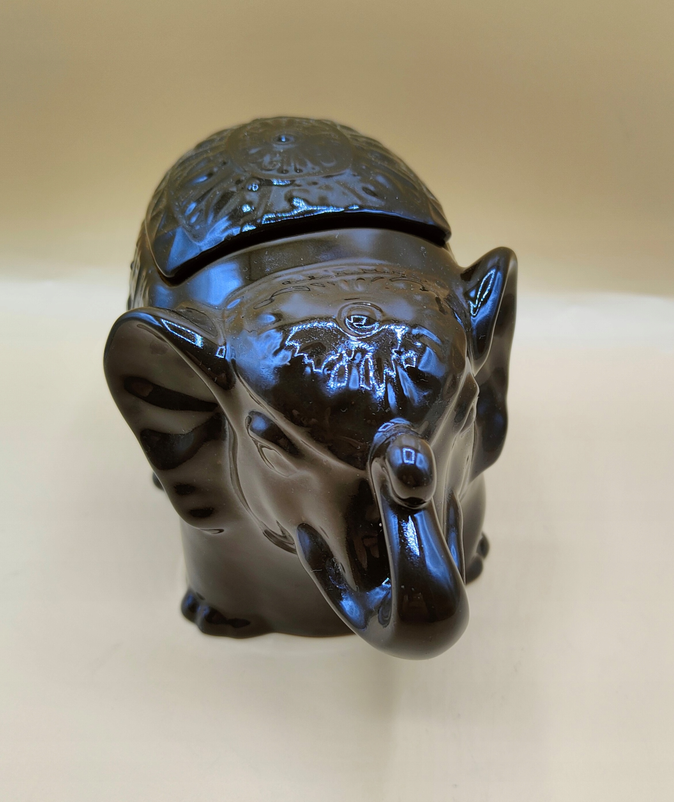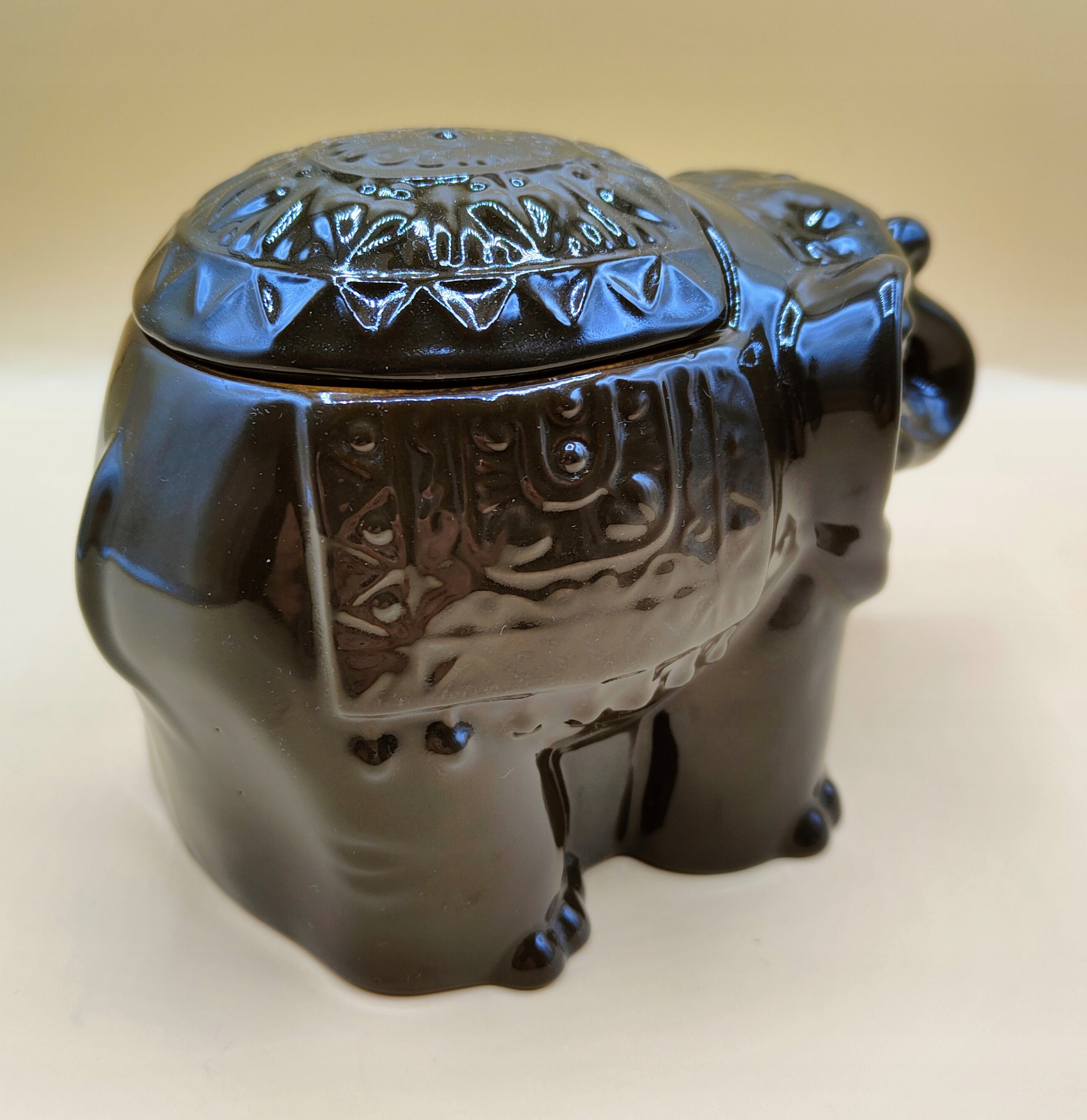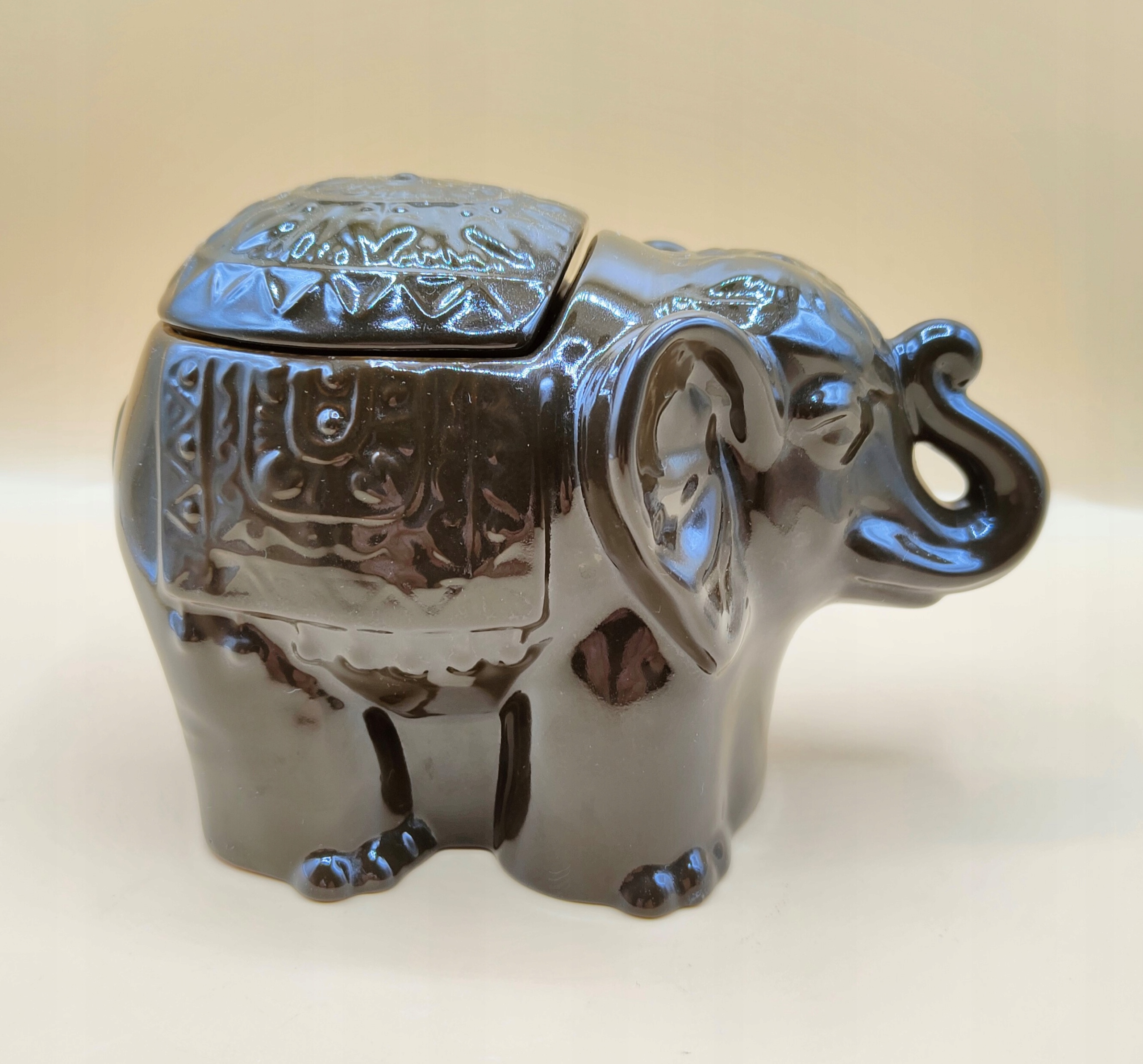 Красивий керамічний контейнер-слоник з кришкою.