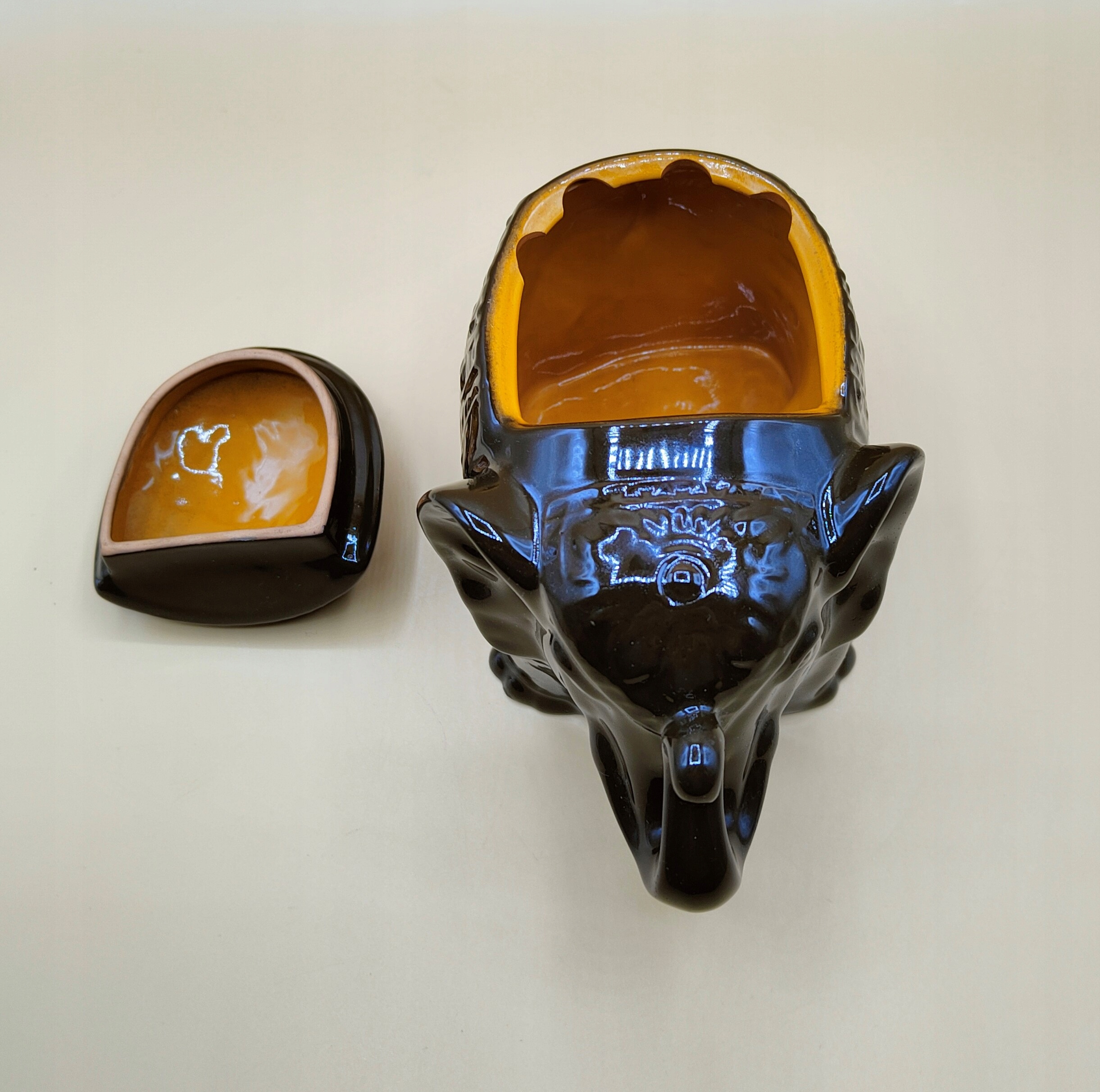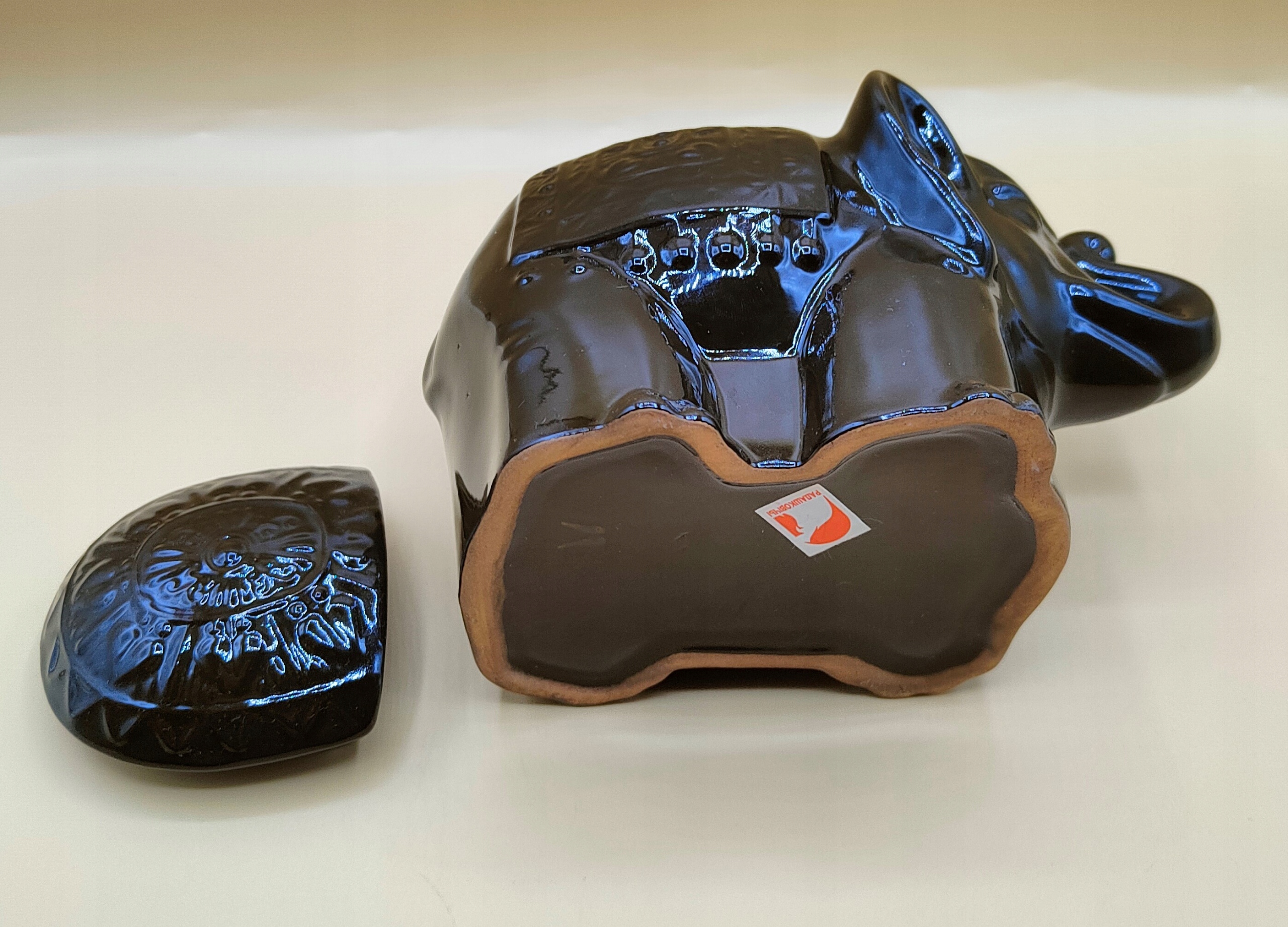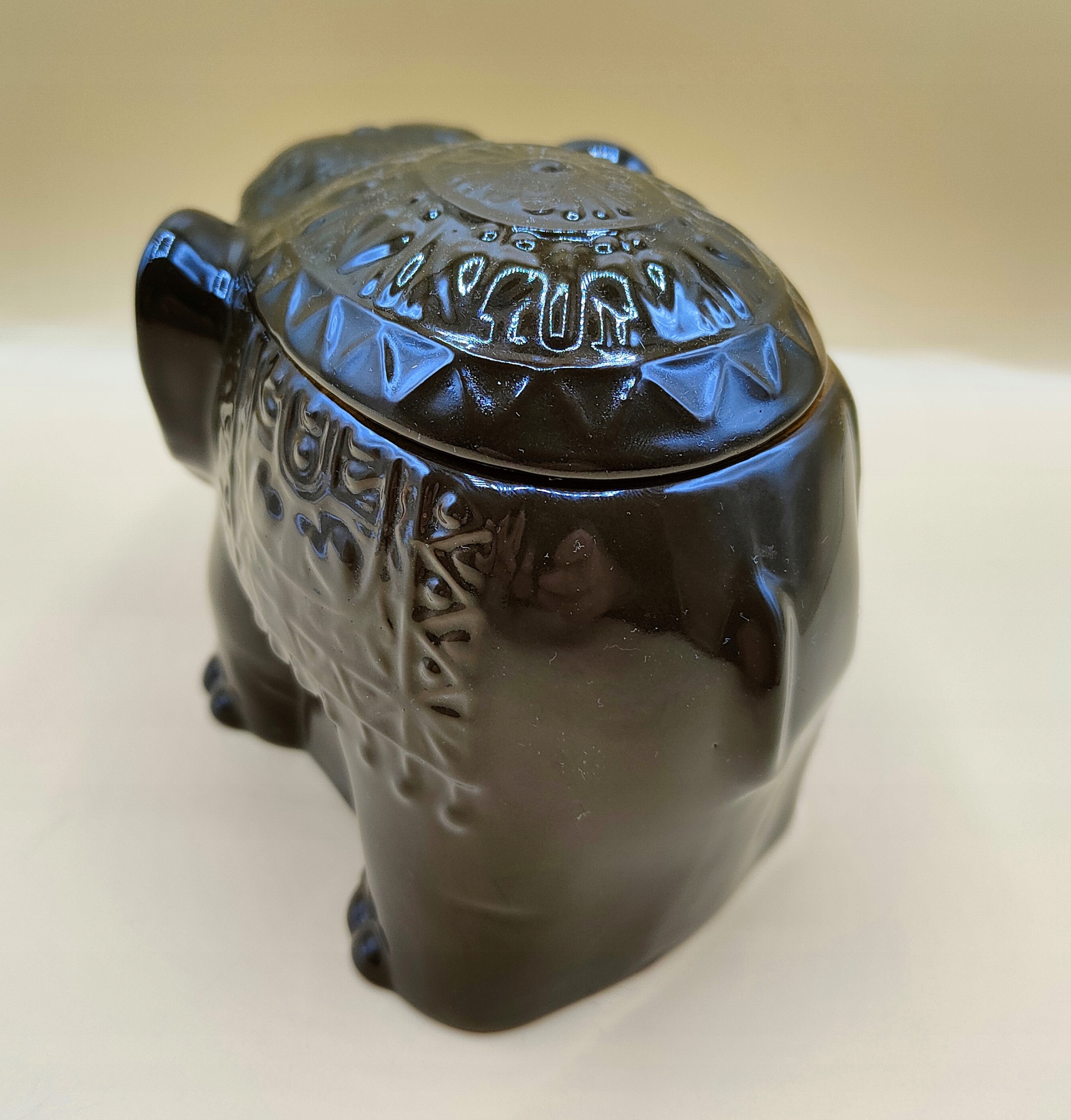 Красивий керамічний контейнер-слоник з кришкою.