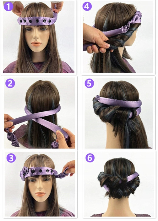 5️⃣ Повернутися до першого. валик, оберніть навколо нього пасма волосся та знову закріпіть.