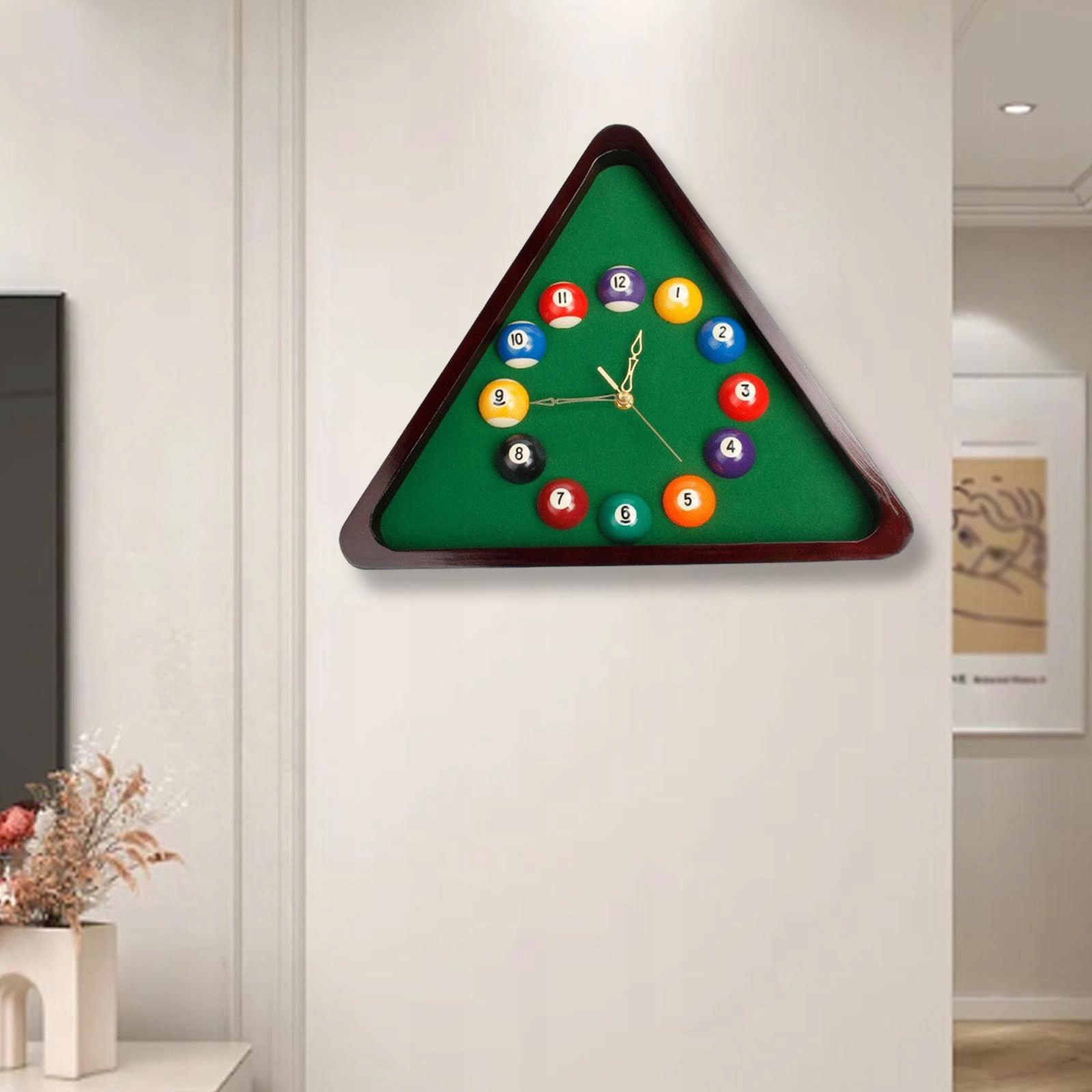 [Сучасне оздоблення стін] Унікальний настінний більярдний годинник у формі трикутника, половина кулі з великим номером більярдної кулі, сучасне оздоблення стін, гарний інтер’єр будинку, декорування кімнати