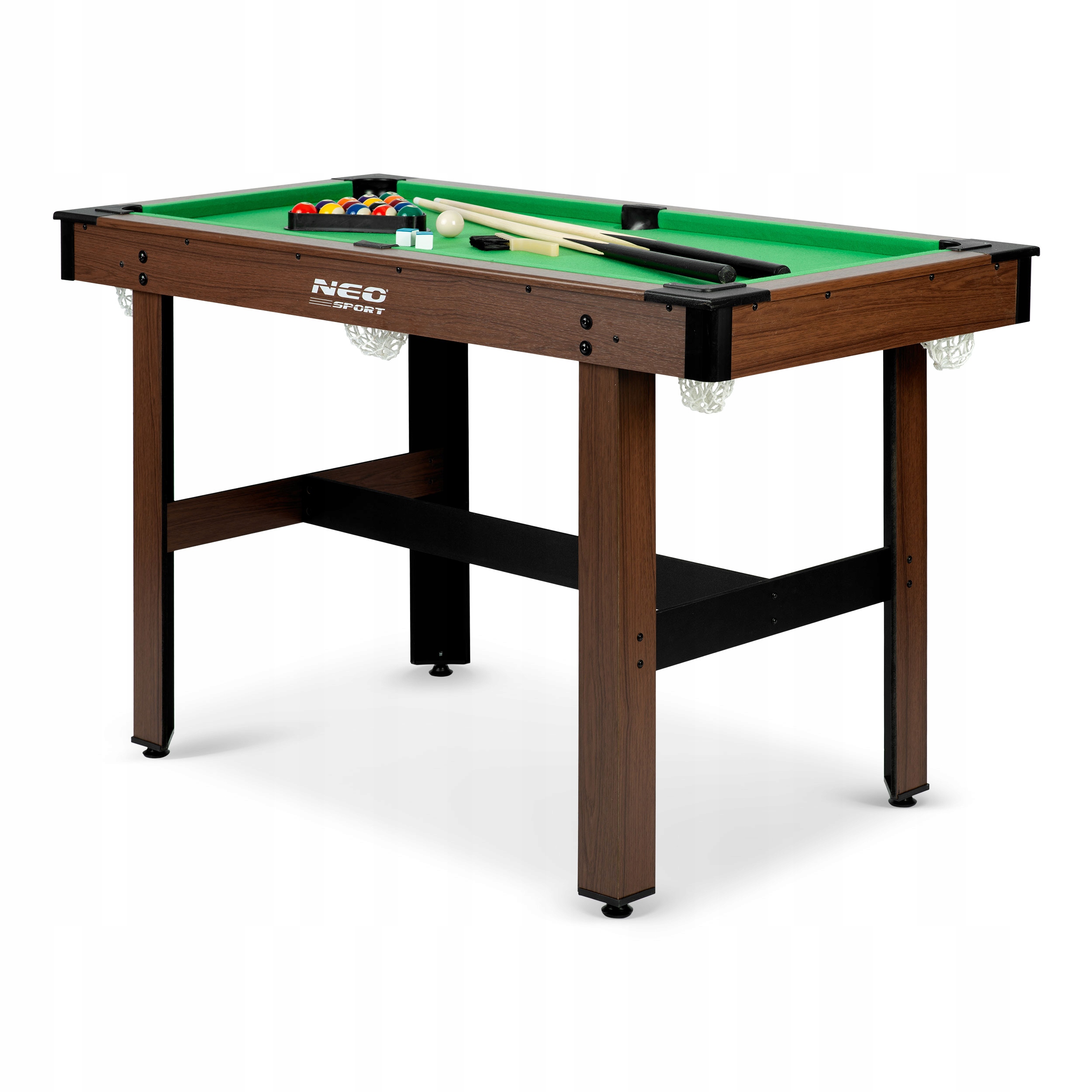 Модель NS-807 можна швидко та легко налаштувати. Стіл стоїть надійно та стійко, тому діти можуть зосередитися на задоволенні гри. У набір входить повний набір аксесуарів, тобто 2 киї, 16 куль, трикутник, більярдна крейда і щітка для чищення. Одним словом повний професіоналізм! Ідеально підходить для тренувань юного чемпіона з більярду.