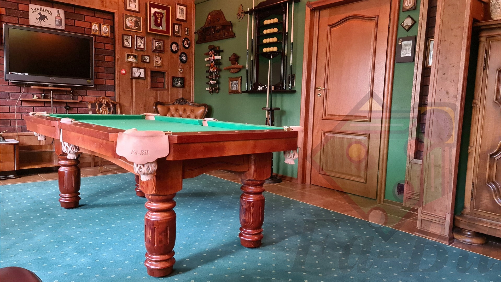 - столи та журнальні столики - виконані в стилі більярдного столу - відмінне рішення облаштувати кімнату в такому ж більярдному стилі