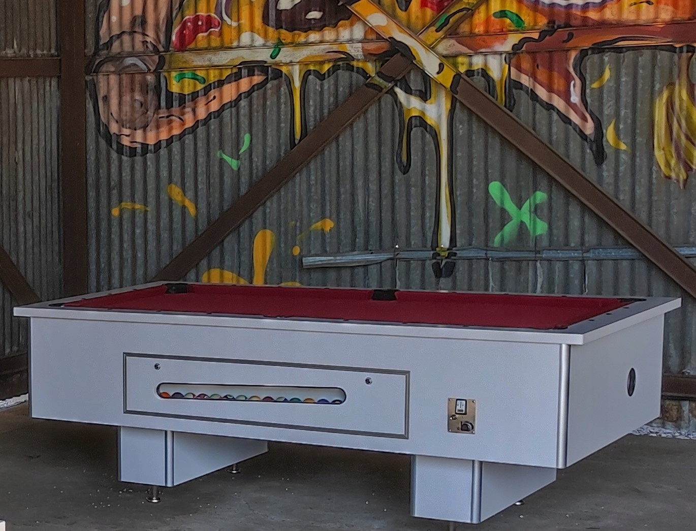 монетний механізм, який, розташований у бічній частині, має легкий доступ до внутрішньої частини столу та можливість випускати механічні кульки.