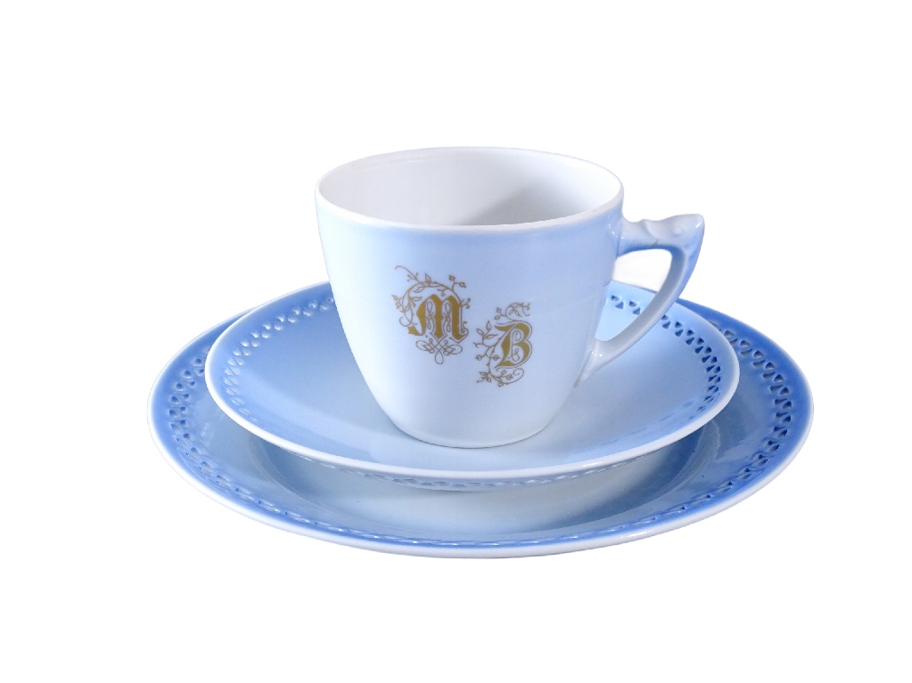 Красива порцелянова чашка з позолоченим монограмою.