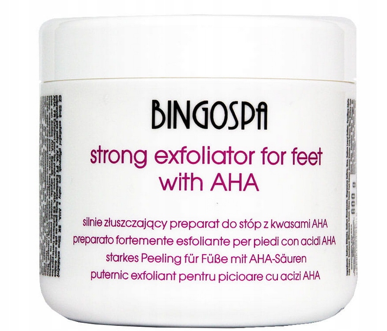 Препарат BingoSpa використовується для відлущування рогового шару шкіри стоп завдяки дії фруктових кислот AHA (альфа-гідроксикислоти) і рослинних екстрактів і олій з відлущувальними та зволожуючими властивостями.