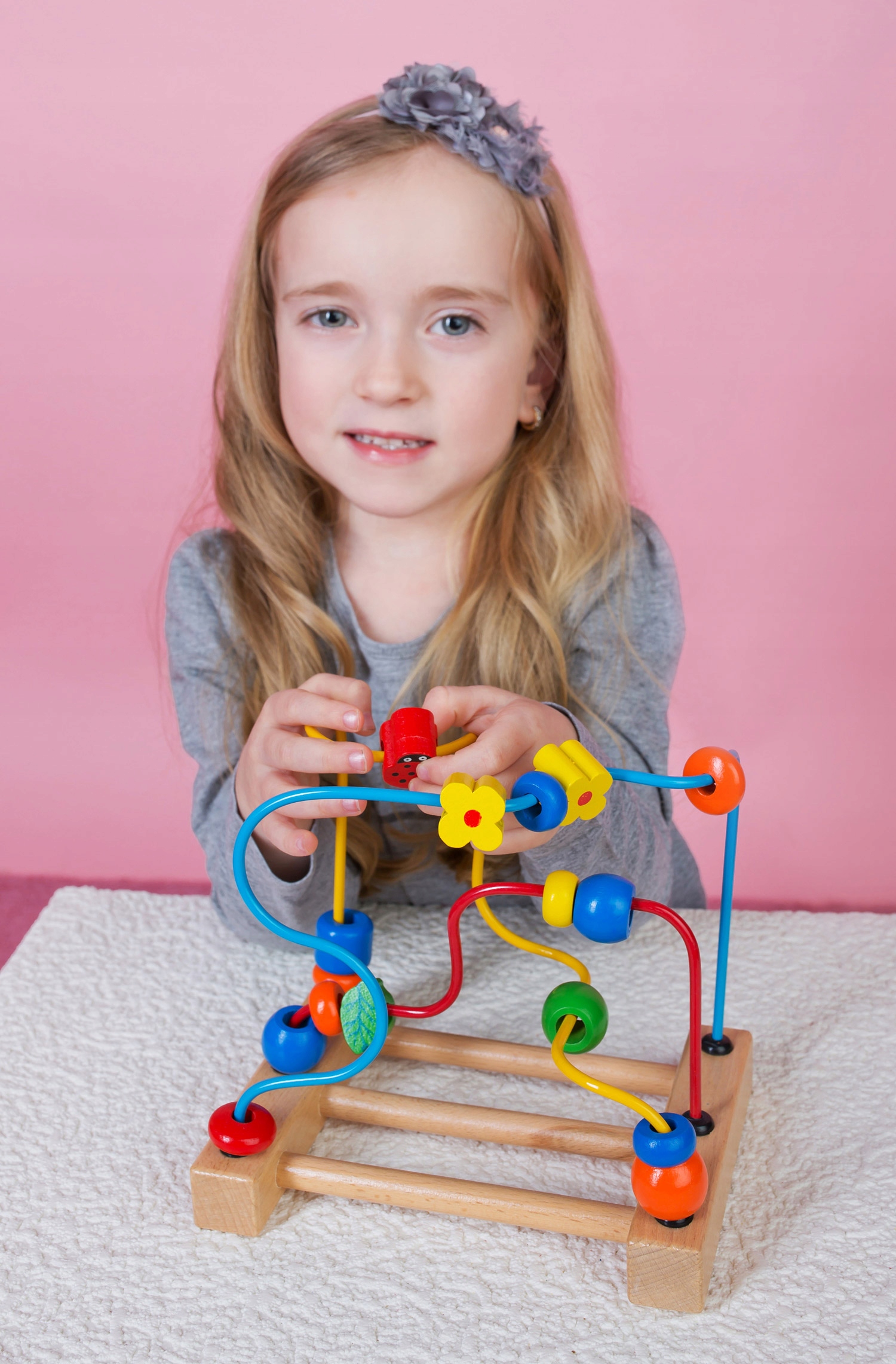 Лабіринт на дерев'яній основі допомагає розвивати дрібну моторику, коли ви пересуваєте намистини різних милих форм і знайомите дитину з кольорами. Він міцний, без гострих країв, і в той же час легкий, адаптований до рук навіть найменших дітей. Основні характеристики: намистини у вигляді тварин і квітів, міцна дерев'яна обробка