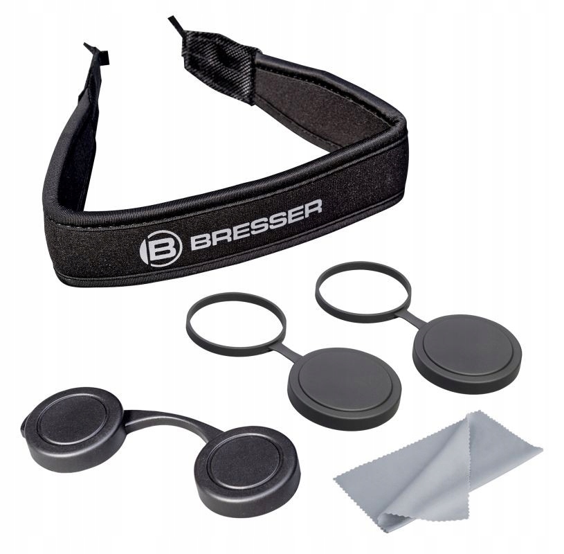 - Бінокулярне обладнання: захисні кришки для об’єктива|захисні кришки для окулярів|ремінець для бінокля, ремінь для футляра, футляр