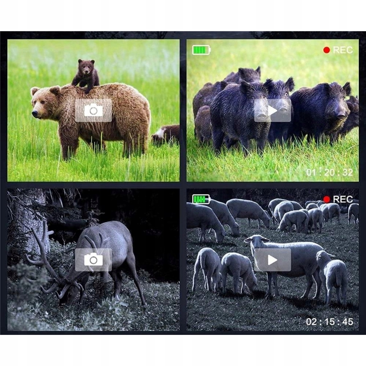 💎💎 Відео 1080P:Цей бінокль нічного бачення використовує роздільну здатність відео 1080P. Функцію виявлення руху можна ввімкнути під час запису відео тварин, що біжать, а зображення також мають функцію стабілізації тремтіння.