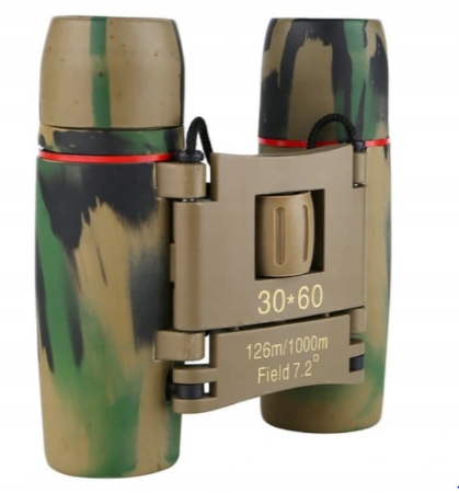 Універсальний маленький туристичний бінокль з параметрами 30Х60 оптимальний для перегляду птахи, лісова дичина, пейзаж, літаки та спортивні події. Лінзи покриті спеціальним покриттям з фториду магнію, що підвищує коефіцієнт світлопроникності та гарантує природну передачу кольору. У центральній частині бінокля розташовані призми з дорогоцінного скла, побудовані за німецькою системою Шмідта-Пехана. Це рішення забезпечує широке поле огляду при збереженні компактних розмірів приладу. У біноклях використовується система призм "дах". Лінзи покриті антибліковим шаром, що значно покращує яскравість одержуваного зображення та високу кольорову контрастність.