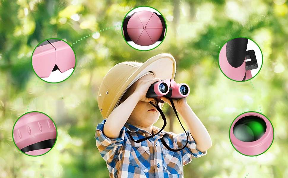 🔎 [безпечний і комфортний]: міцний, ударний бінокль з м'яким гумовим покриттям, що захищає очі та обличчя. Ергономічний дизайн забезпечує повне зчеплення і комфортно лежить в руках дітей. Повідок від смітника може запобігти падінню. Регульована та складна конструкція, щоб адаптувати відстань від ока до кожної дитини
