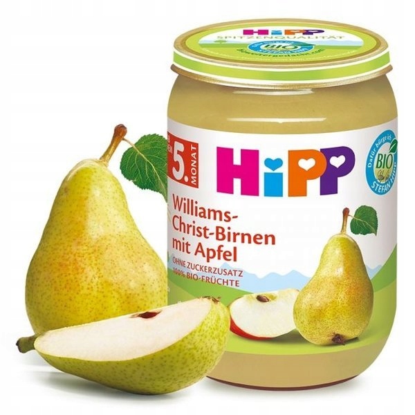 фруктові пюре, виготовлені з груш та яблук, є здоровим десереком для дітей з 5 місяців. Груші, як один з небагатьох фруктів, містять йод - мінерал, що позитивно впливає на функціонування щитовидної залози. Крім того, груші проти інших фруктів відрізняються змістом бору - елементом, що підтримує роботу сірих клітин та покращує можливість концентрації. BOR також запобігає кістку кістки. Однак у них найбільше калію. Однак яблука містять, серед інших, пектини, які позитивно впливають на метаболізм.