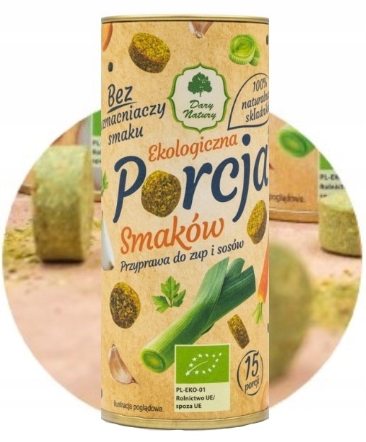 БІОБУЛЬЙОННИЙ КУБ ЕКО БУЛЬЙОН 15 ШТ Dary Natury Portacja Smaków Спеція для СУПІВ СОУСІВ 15X120г Dary Natury