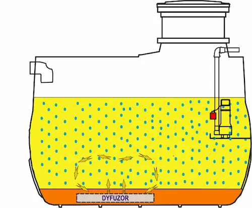На цьому етапі вже уточнена та очищена частина стічних вод викачується. У ситуації, коли до очисної станції немає притоки стічних вод, пристрій переходить в економічний режим, який також називається режимом свят. Це дозволяє заощадити енергію та забезпечує тривалу та безпроблемну роботу очисної споруди.