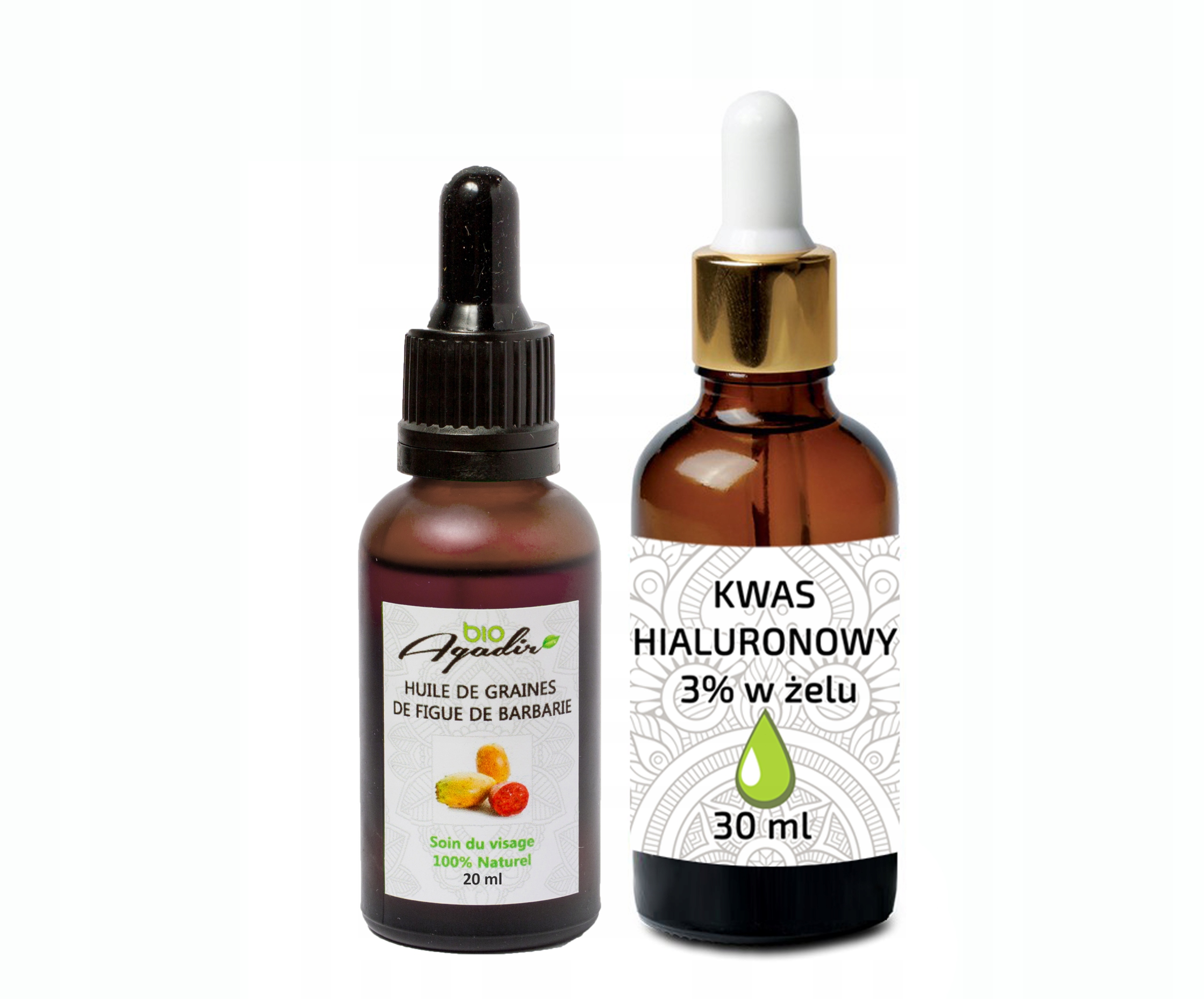 Це дуже хороший захист від ознак плину часу. Особливо рекомендується при застосуванні разом з олією кісточок опунції або аргановою олією! Тоді воно має найсильніший омолоджуючий ефект і дію проти зморшок. Розгладжує, зміцнює та запобігає втраті води з шкіри, що робить шкіру еластичною та пружною. Гіалуронова кислота (ГК) також використовується у випадках рубців, що важко заживають. Дуже висока біосумісність з організмом людини робить його безпечним у використанні та не викликає подразнень.