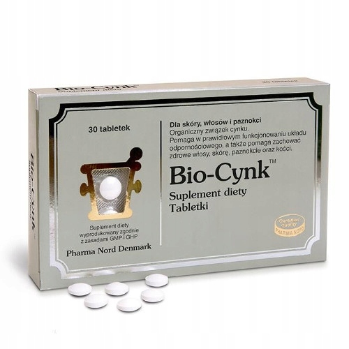 Bio-Zynk — це круглі білі таблетки, що містять чистий органічно зв’язаний цинк у формі глюконату цинку, який має високу абсорбцію. в тілі. Вміст цинку в кожній таблетці становить 15 мг. Це відповідає 150% норми споживання.