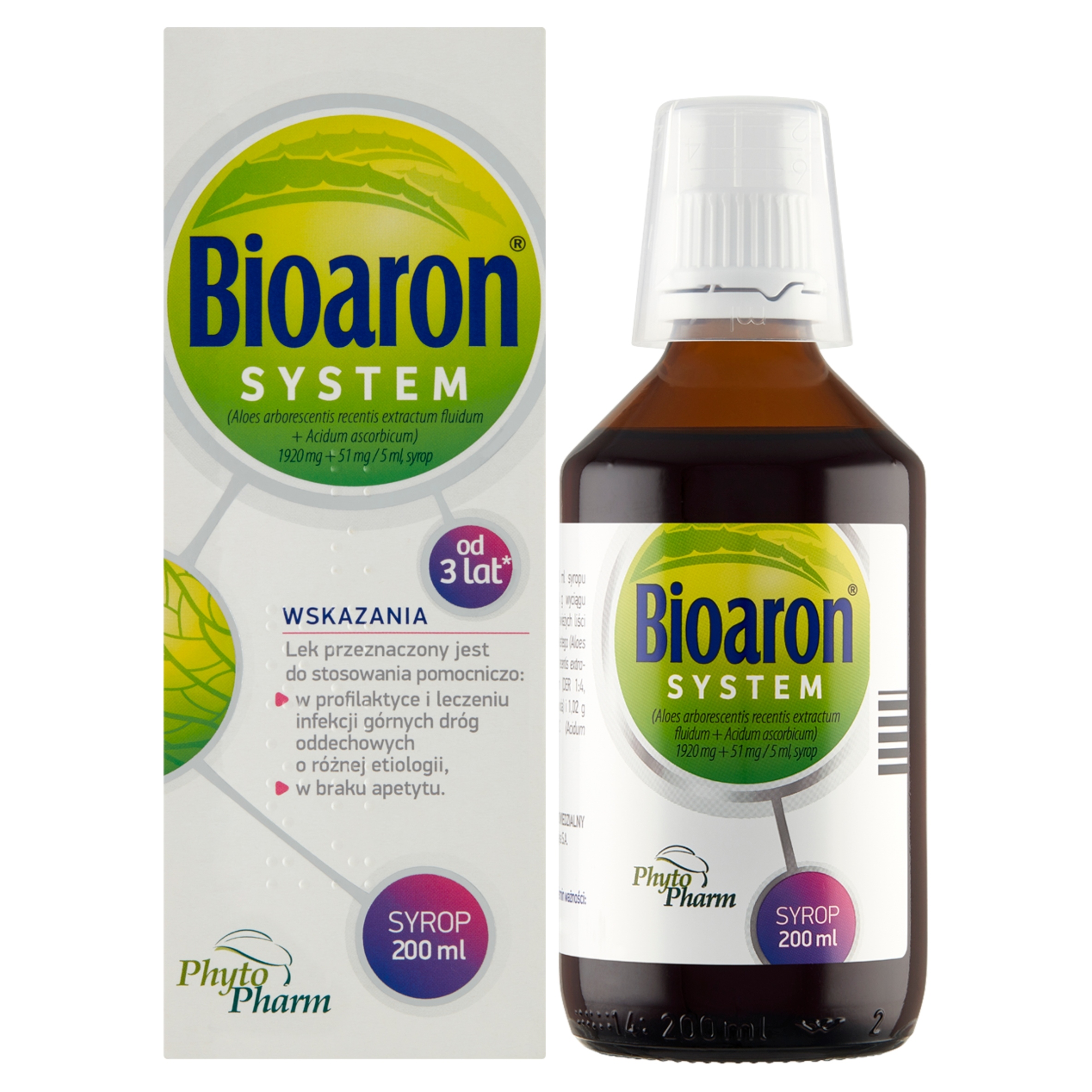 Біоаронна система (біоарон С) - це лікарський продукт, який підтримує лікування та профілактику інфекцій верхніх дихальних шляхів, а також стимулює апетит. Препарат містить екстракт деревного алое вера та вітамін С і може використовуватися у дорослих, а також у дітей старше 3 років. 4