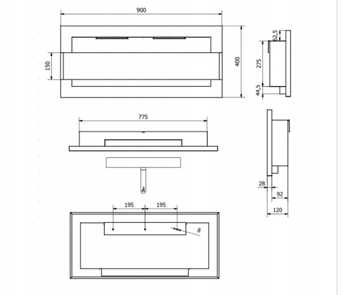 - ГЛИБИНА Найменша глибина установки на Allegro - лише 90 мм. Загальна глибина пропонованого біокаміна становить лише 120 мм.