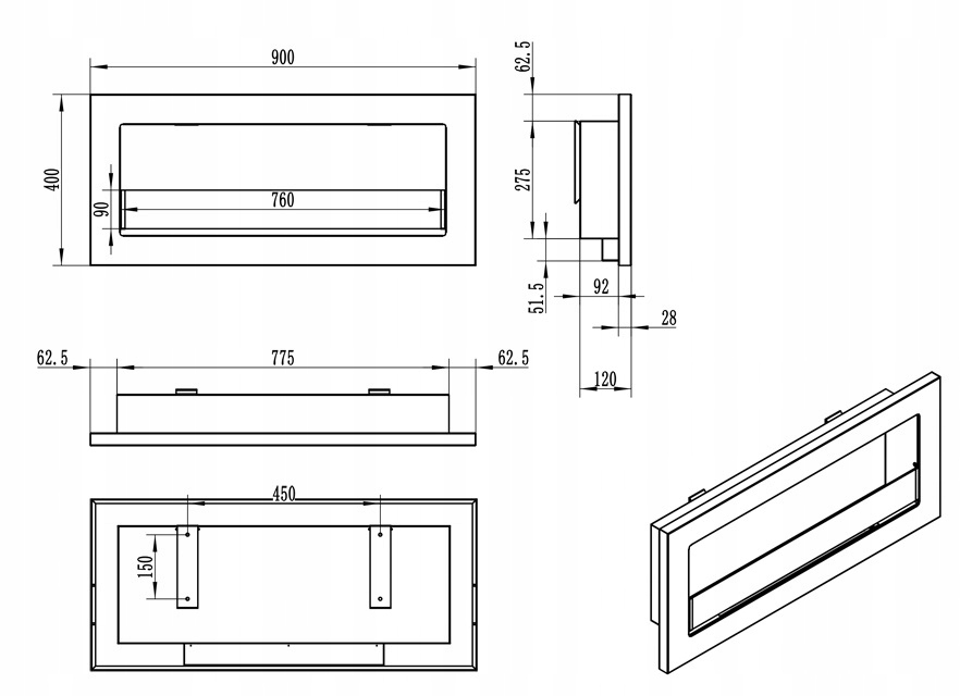 - Тип біокаміна: для підвісної або гіпсокартонної конструкції