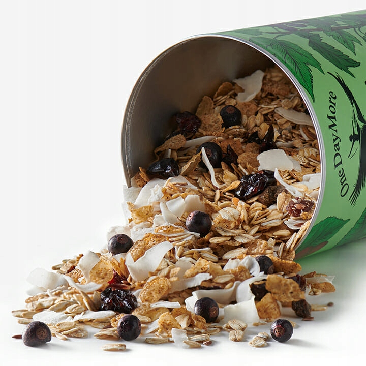 вівсяні пластівці* 44%, підсмажені ячмінні пластівці* 11%, курага* 11% (абрикоси 97%, рисове борошно), родзинки* 11% (родзинки 99,5%, соняшникова олія), кокосова стружка* 10 %, насіння льону*, ліофілізована вишня* 2,3%, ліофілізована смородина* 1,8%.