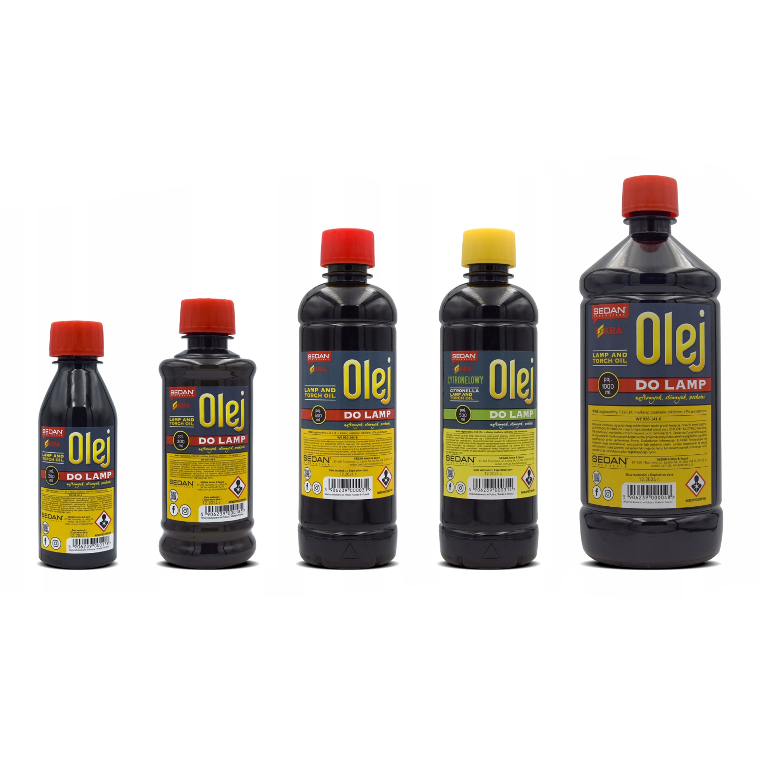 Пропозиція включає олії без запаху, доступні в різних об’ємах, а також олії з ароматом цитронелли, лаванди, троянди, кориці та сосни.