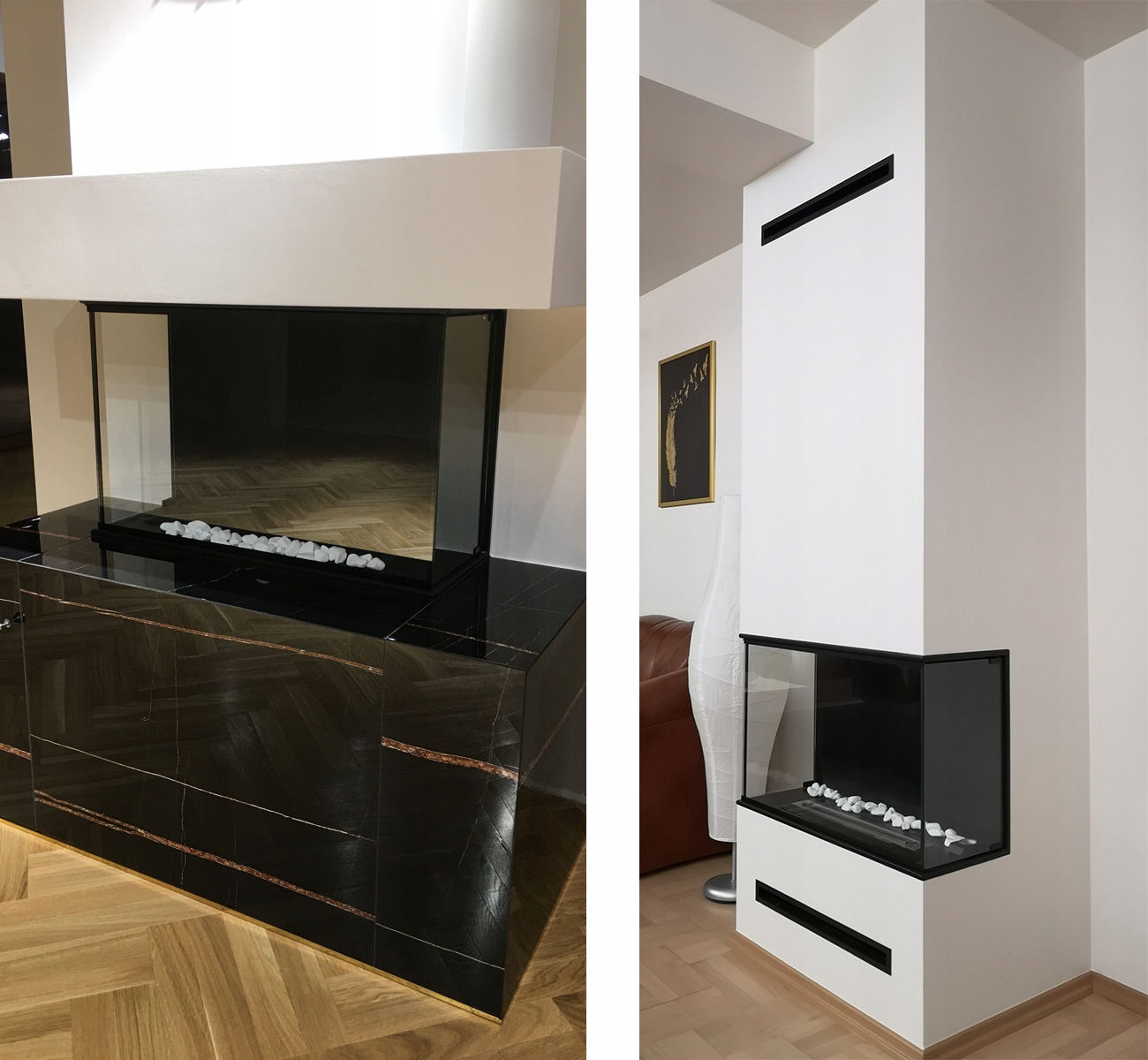 Біо -камін оснащений одним 3D -пальником з шириною до 800 мм, що з шириною 1000 мм біофірування гарантує вражаючу пожежну лінію.