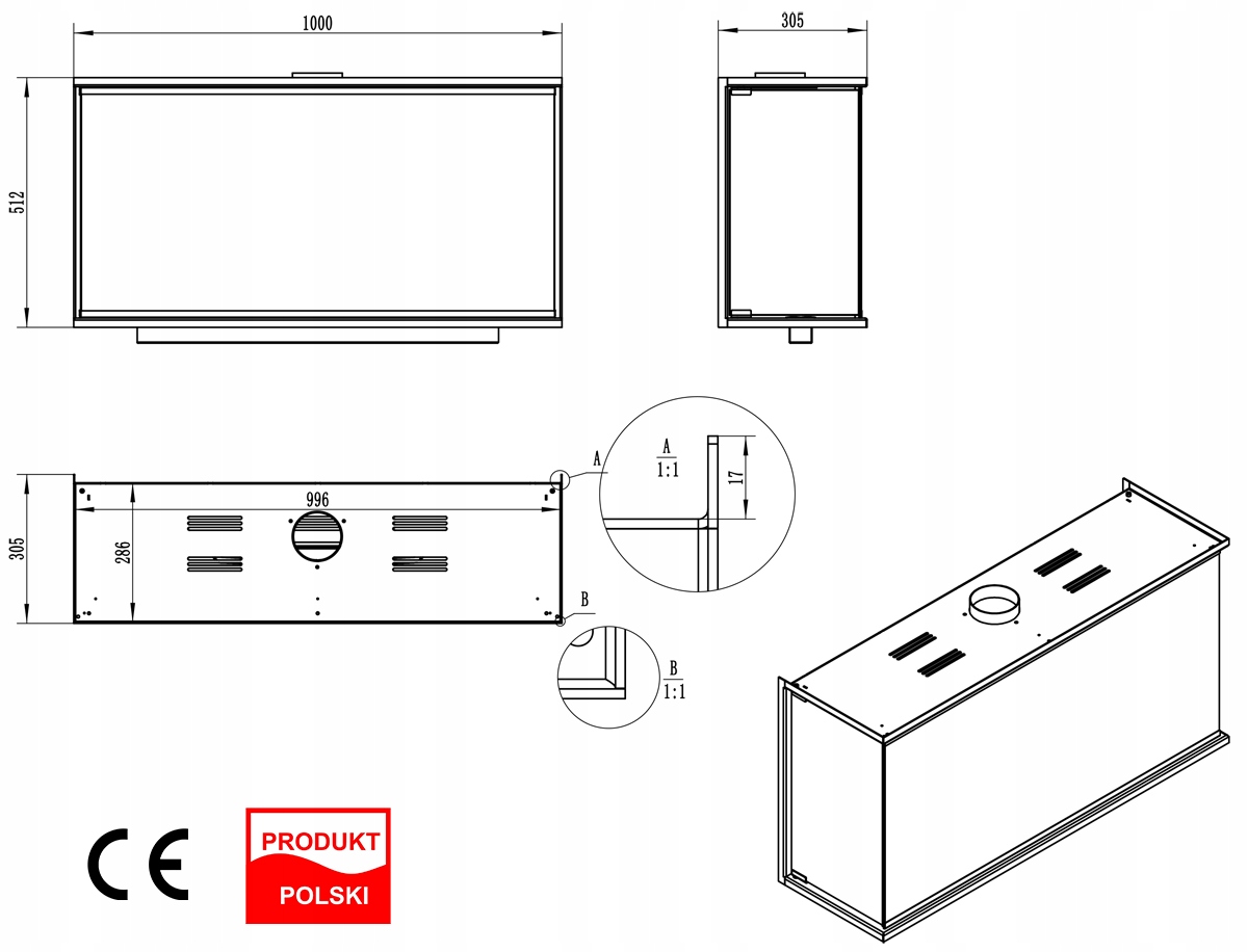 Розміри: ширина 1000 мм/ висота 512 мм/ глибина 305 мм;