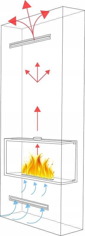 Все, що вам потрібно зробити, це встановити вентиляційні решітки (люфтового або тунельного типу) в будівлі, під і над біокаміном . У верхній частині біокаміна є отвір діаметром 100 мм, його можна з’єднати з верхньою вентиляційною решіткою, але з’єднання не обов’язкове. Важливо, щоб у будівлі був вільний простір, щоб тепло могло вільно проходити.
